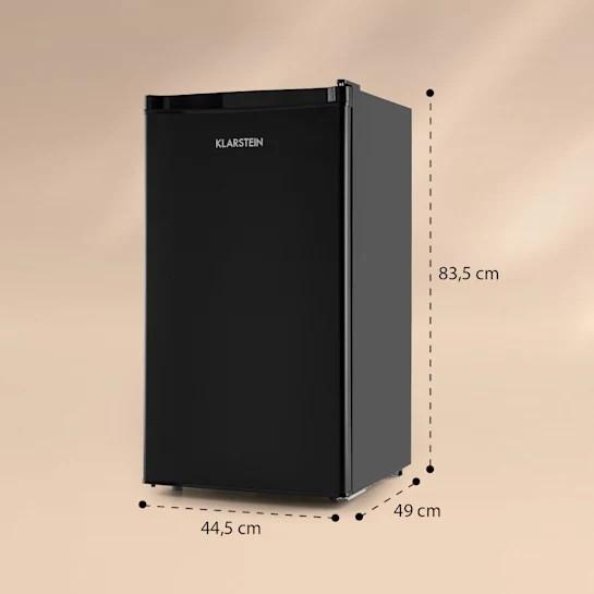 Chladnička, Objem: 90 litrov, Ročná spotreba energie: 110 kWh/rok, Nastaviteľná teplota chladenia: 7 úrovní, Prevádzková hlučnosť: 42 dB