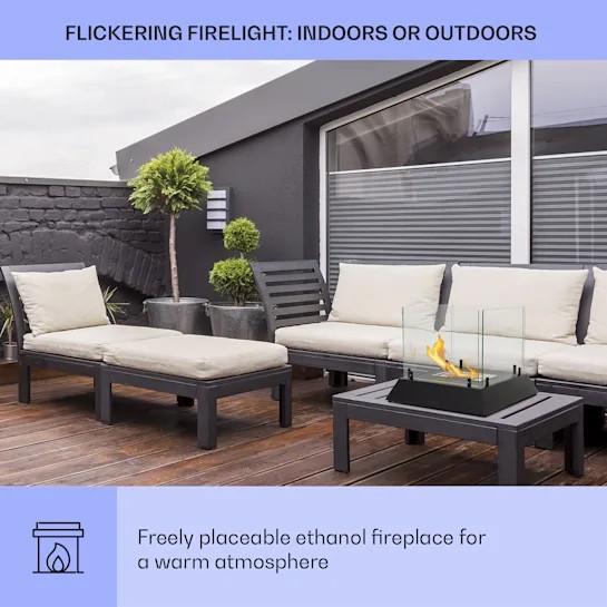 - Hrejivé plamene: moderný stolový krb s bezpečnostným sklom