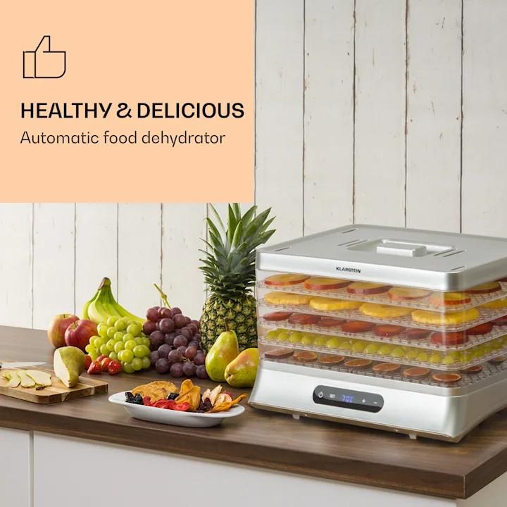 KLARSTEIN SILVER, SUSICKA POTRAVIN, 500 W, LED DISPLEJ, BEZ BPA, 35 – 70 °C, STRIEBORNA 10034429