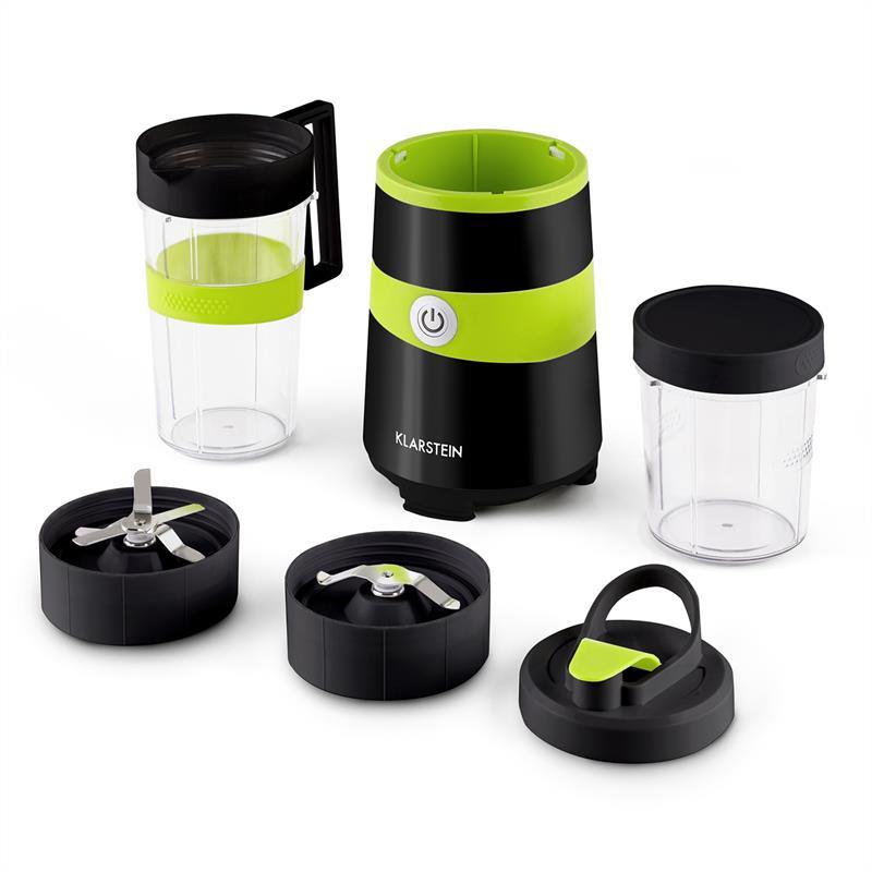 Aby sme Vás pri tom podporili, mixér na prípravu smoothie Vitalic od spoločnosti Klarstein je vybavený rozsiahlym príslušenstvom: Veľký a malý mixovací pohár sú vhodné pre požadované množstvo nápoja. Po príprave môžete priskrutkovať na pohár praktickú rúčku, ktorá umožňuje so svojím otvorom na pitie konzumáciu vitamínových bômb bez veľkého rozlievania. Vďaka dvom skrutkovacím vekám je pohár pripravený na cestu: Takže si môžete vziať svoje ovocné výtvory do práce, do parku alebo na športovanie bez toho, aby ste ich museli prelievať. Jeden z krytov má dokonca aj uzatvárateľný otvor na pitie.