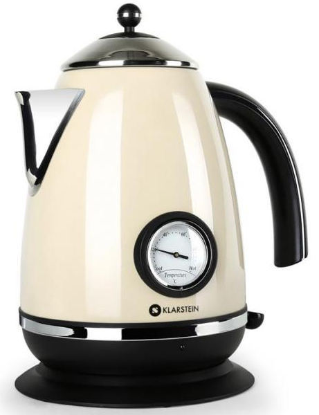 Klarstein Aquavita Chalet je ?armantná rýchlovarná kanvica na prípravu teplých nápojov, caju, kávy a pod.