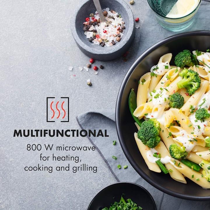 - Multifunkčná: 800 W mikrovlnná rúra na ohrev, varenie a grilovanie
