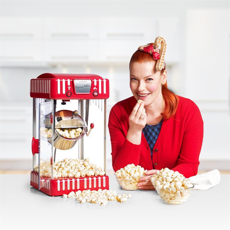 Klarstein zariadenie na popcorn ponúka nielen vôňu, ale aj chuť ako v zábavnom parku alebo v kine. Zariadenie Vás už za niekoľko minút bude rozmaznávať hotovým (podľa želania tiež sladeným alebo soleným) popcornom a prebudí vo Vás pozitívne spomienky spojené s príchodom do kina. Po krátkom rozohriatí, s trochou oleja a lyžicou popcornovej kukurice popcorn voňavo poskakuje v nádobe a vyskakuje z nerezového hrnca.