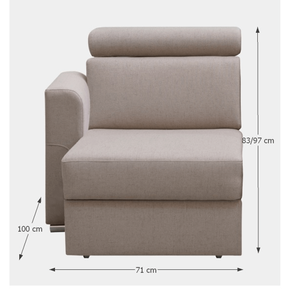 1-sed 1 1B L k sedacej súprave MARIETA, ľavé prevedenie, na objednávku Rozmery: (ŠxHxV): 71x100x83/97 cm Výška spodného priestoru od podlahy: 5 cm Materiál: látka CABLO Oderuodolnosť textílie podľa testu Martindale: 72 000 oderov Farba: béžová Nosnosť na osobu: 90 kg Dodávané v demonte, doba dodania 6-8 týždňov. Ponúkame vám možnosť zložiť si sedačku vo vlastnom rozmere a podľa vlastných potrieb. Komponenty na zloženie hľadajte v našej ponuke. Máme pre vás hneď sedem farieb látky Cablo a sedem farieb ekokože, kombinovať teda môžete podľa ľubovôle. Odtiene nájdete v priloženom vzorkovníku. Výber farebného odtieňa poznačte pri objednávaní priamo do poznámky. Pri individuálnej objednávke je potrebné zaplatiť 10% zálohu z danej sumy. Po uhradení zálohy bude Vaša požiadavka zadaná do výroby. Doba dodania 6-8 týždňov. Cena takto zloženej sedačky v inej farbe závisí od počtu jednotlivých dielov, ktoré ju tvoria. Odporúčame preveriť si konečnú cenu.