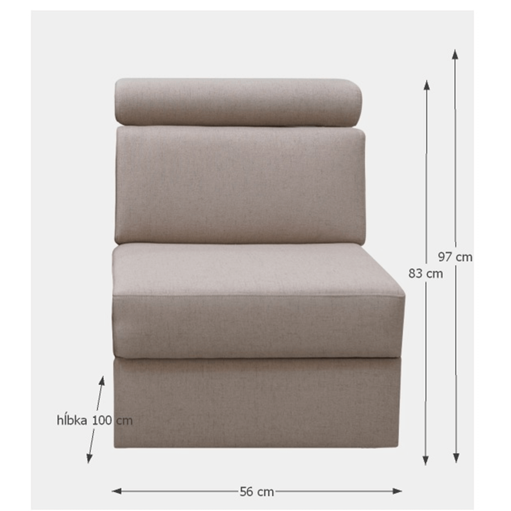 1-sed 1 BB k sedacej súprave MARIETA, na objednávku Rozmery: (ŠxHxV): 56x100x83/97 cm Nosnosť na osobu: 90 kg Výška spodného priestoru od podlahy: 5 cm Materiál: látka CABLO Oderuodolnosť textílie podľa testu Martindale: 72 000 oderov Farba: béžová Dodávané v demonte, doba dodania 6-8 týždňov. Ponúkame vám možnosť zložiť si sedačku vo vlastnom rozmere a podľa vlastných potrieb. Komponenty na zloženie hľadajte v našej ponuke. Máme pre vás hneď sedem farieb látky Cablo a sedem farieb ekokože, kombinovať teda môžete podľa ľubovôle. Odtiene nájdete v priloženom vzorkovníku. Výber farebného odtieňa poznačte pri objednávaní priamo do poznámky. Pri individuálnej objednávke je potrebné zaplatiť 10% zálohu z danej sumy. Po uhradení zálohy bude Vaša požiadavka zadaná do výroby. Doba dodania 6-8 týždňov. Cena takto zloženej sedačky v inej farbe závisí od počtu jednotlivých dielov, ktoré ju tvoria. Odporúčame preveriť si konečnú cenu.