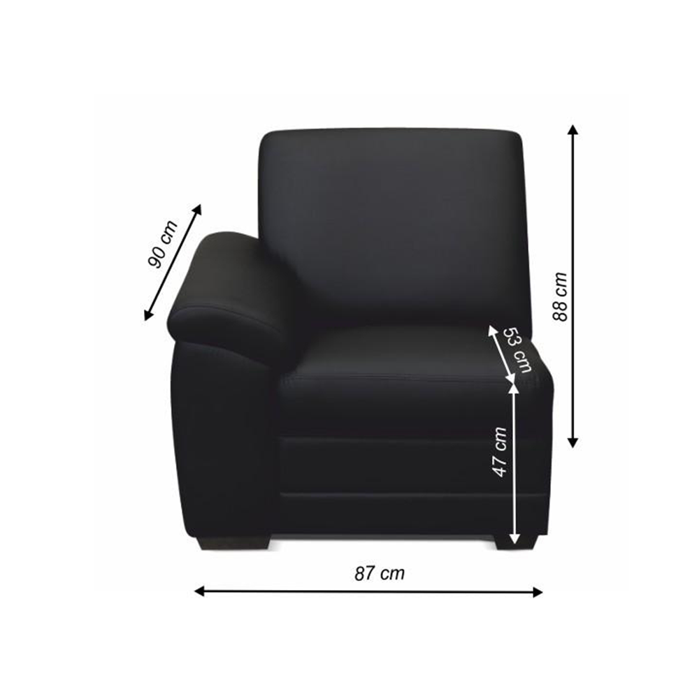 1-sed s opierkou BITER 1 1B Materiál: ekokoža Oderuodolnosť textílie podľa testu Martindale: 100 000 oderov Farba: čierna Rozmery (ŠxHxV): 87x90x88 cm Výška spodného priestoru od podlahy: 3 cm Nosnosť na osobu: 90 kg Dodacia lehota 8-10 týždňov. Ponúkame vám možnosť zvoliť si farebný odtieň zo siedmich farieb látky Cablo a zo siedmich farieb ekokože. Odtiene nájdete v priloženom vzorkovníku. Výber farebného odtieňa poznačte pri objednávaní priamo do poznámky. Pri individuálnej objednávke je potrebné zaplatiť 10% zálohu z danej sumy. Po uhradení zálohy bude Vaša požiadavka zadaná do výroby. Doba dodania 6-8 týždňov. Cena takto zloženej sedačky v inej farbe závisí od počtu jednotlivých dielov, ktoré ju tvoria. Odporúčame preveriť si konečnú cenu.