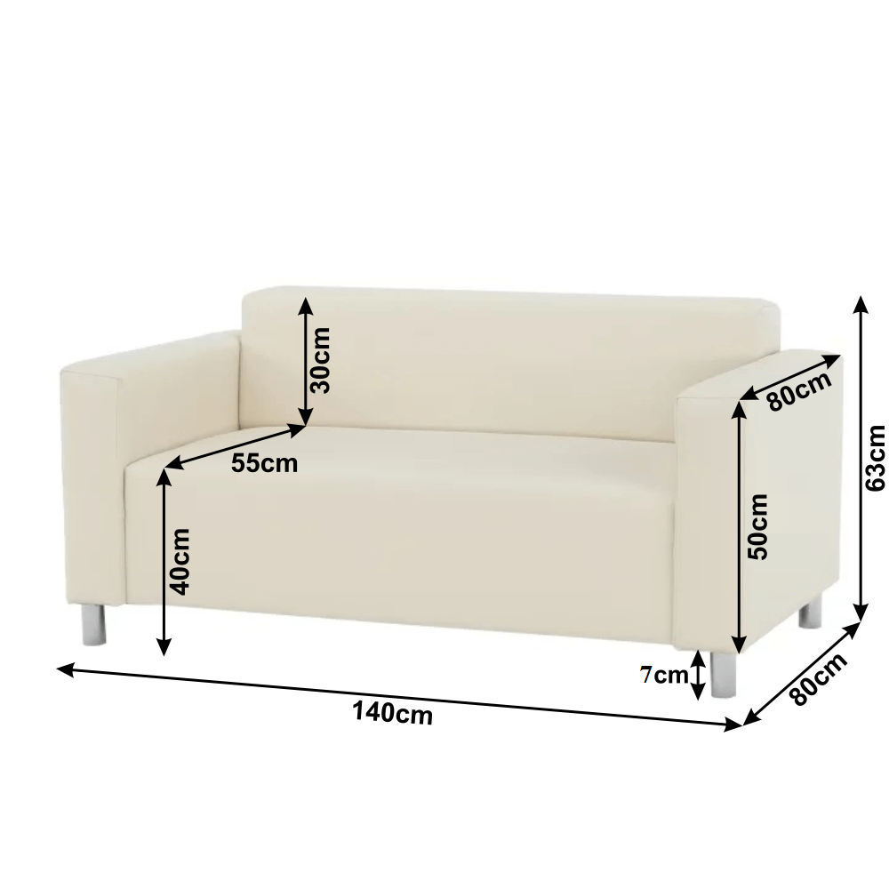 Celočalúnený 2-sed HOMKER prevedenie: ekokoža béžová, Oderuodolnosť textílie podľa testu Martindale: 100 000 oderov rozmery: (ŠxHxV): 140x78x63 cm , výška x hĺbka sedenia: 40x55 cm. Výška spodného priestoru od podlahy: 7 cm Opierka na ruky (HxV): 80x50 cm Nosnosť na osobu: 90 kg Výška chrbtovej opierky: 30 cm Možnosť objednania v 6 vyobrazených farebných prevedeniach v cene 259 Eur. Pri individuálnej objednávke je potrebné zaplatiť 10% zálohu z danej sumy. Po uhradení zálohy bude Vaša požiadavka zadaná do výroby. Dodacia lehota 6-8 týždňov.