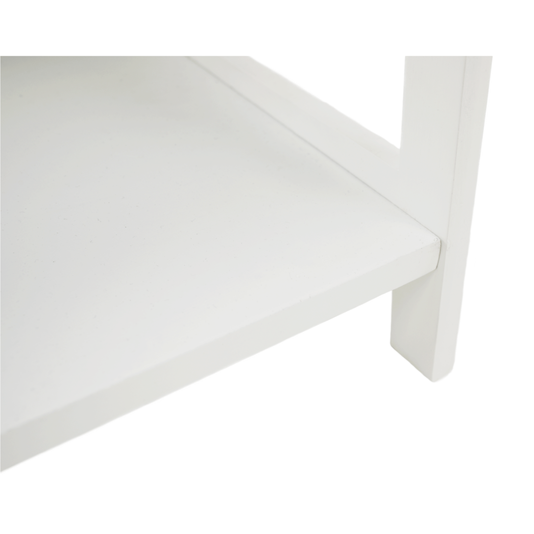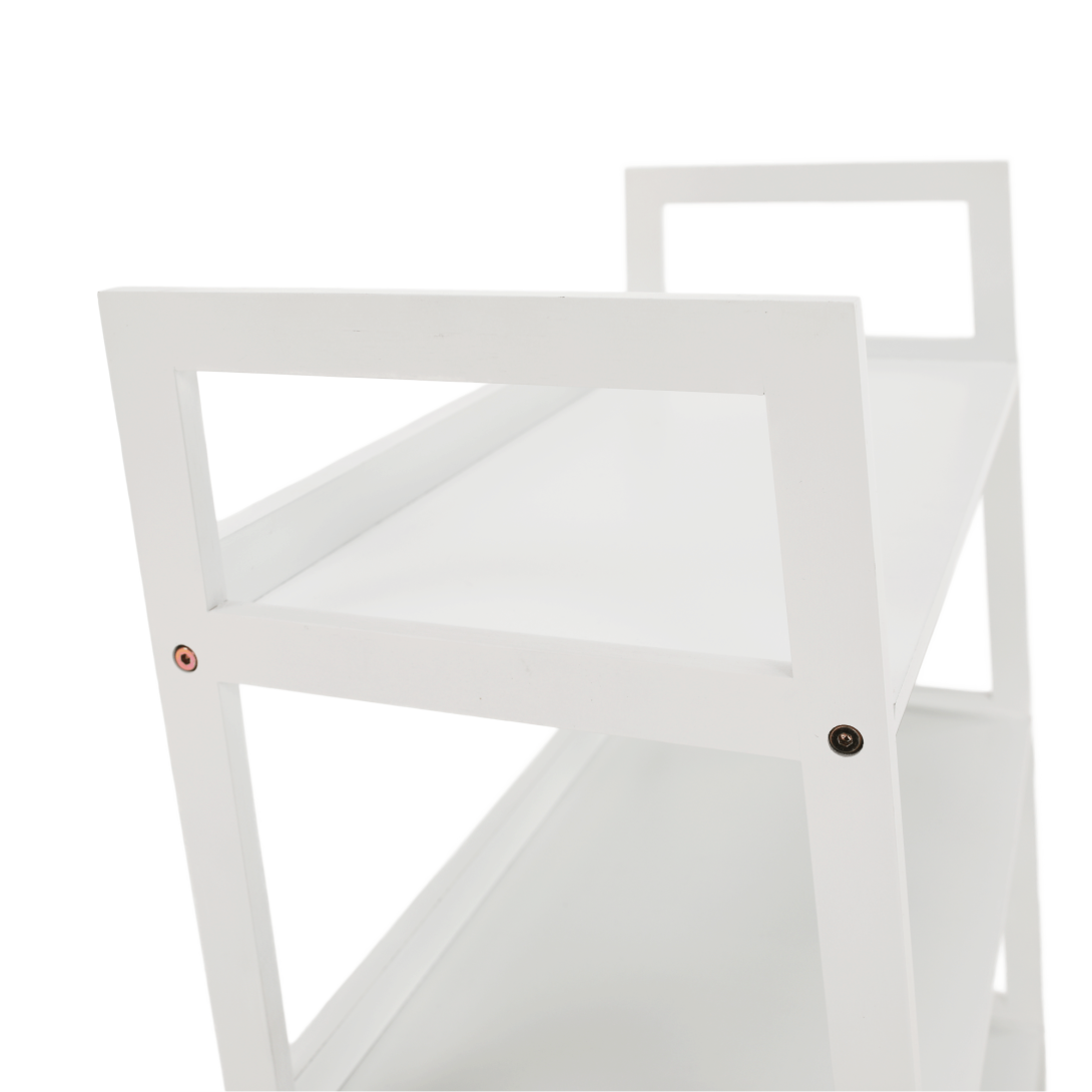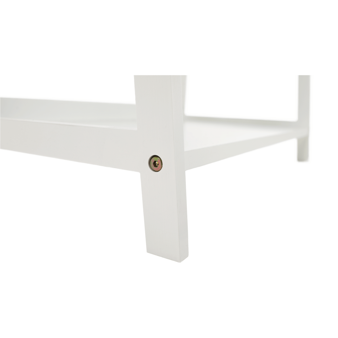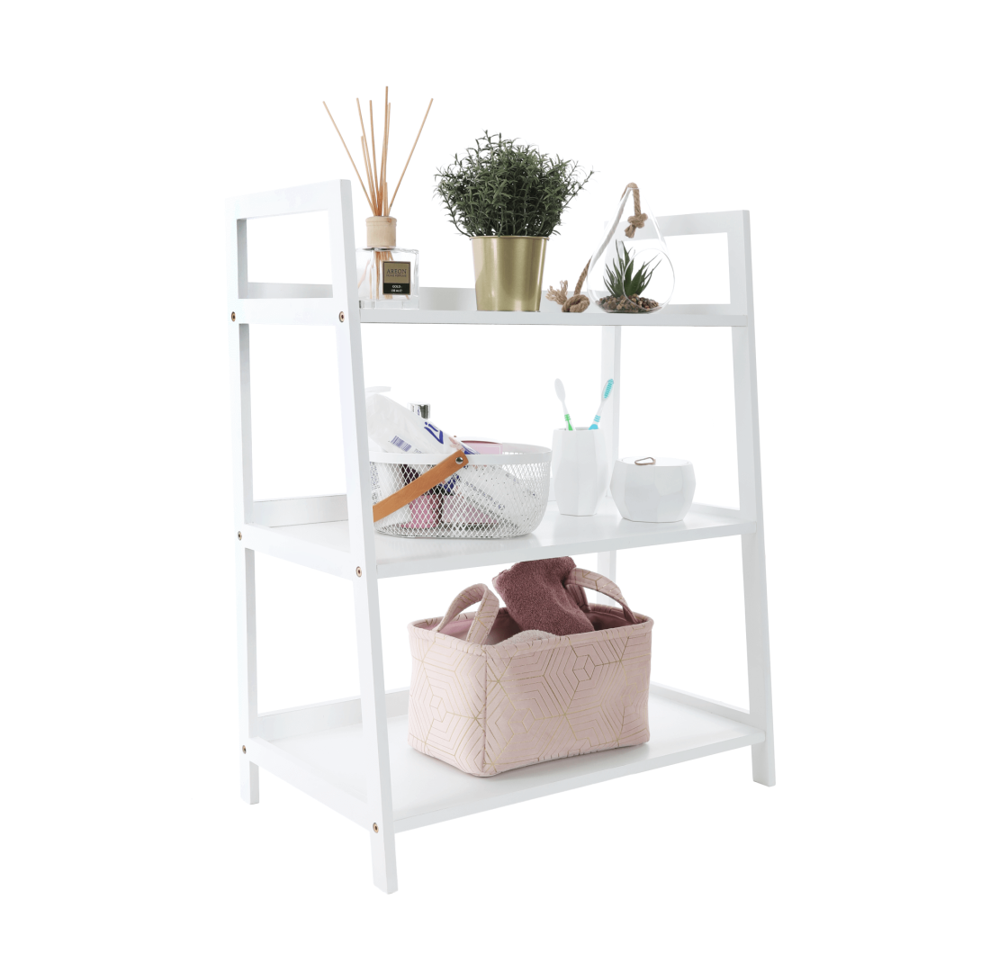 Viacúčelový regál REONMateriál: MDF/bambus lakovanýFarba: bielaRozmery (ŠxHxV): 63x36x77,5 cmHrúbka materiálu stojan: 1,4 cmHrúbka materiálu polica: 1,6 cmNosnosť na jednu policu: 5 kg3 policeHĺbka vrchnej police: 27,4 cmHĺbka strednej police: 30,3 cmHĺbka spodnej police: 33,2 cmPriestor medzi vrchnou a strednou policou: 26,2 cmPriestor medzi strednou a spodnou policou: 27 cmModerný dizajnPraktickýDodávané v demonte.