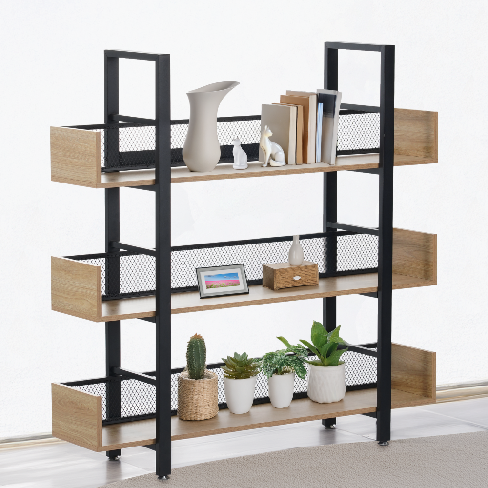 KONDELA 3-policový regál, dub/čierna, KILIS NEW TYP 1
