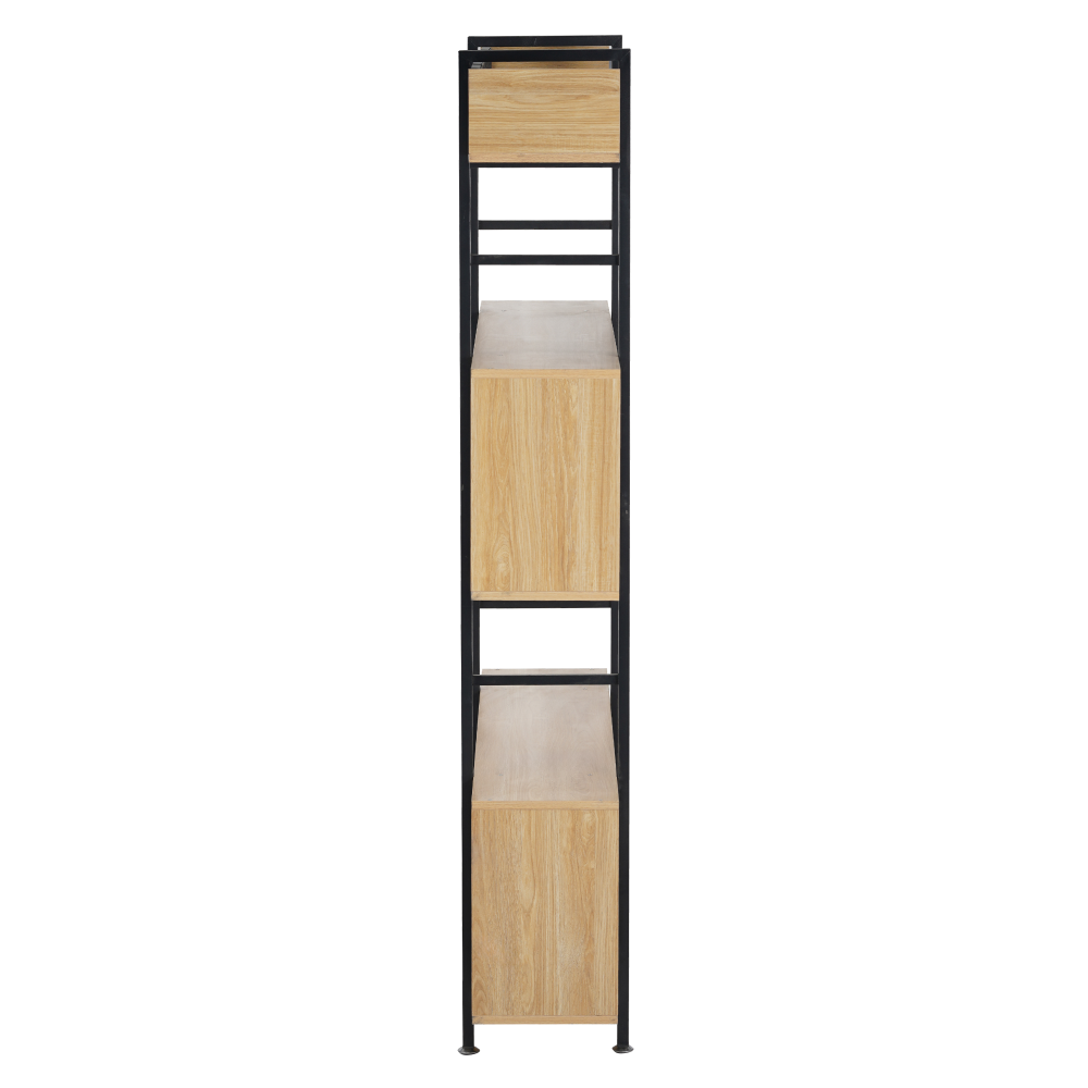 Materiál: kov/DTD fóliovanáFarba: čierna/dubRozmery (ŠxHxV): 120x30x180 cmRozmery police (ŠxHxV): 120x30x15,8 cmRozmery strednej police (ŠxHxV): 120x30x40 cmRozmery spodnej police (ŠxHxV): 120x30x40 cmHrúbka kovu: 0,8 mmRozmer kovovej stojky: 4x2 cmHrúbka police: 1,5 cmVýška od zeme po policu: 11,3 cmVýška medzi spodnou a strednou policou: 36,5 cmVýška medzi strednou a vrchnou policou: 36 cm3-policovýViacúčelovýModernýPraktickýKombinovateľný s KILIS NEW TYP 1-4Kombinovateľný s písacím stolom KILIS NEWS vyrovnávacími nožičkamiMožnosť upevnenia na stenuNosnosť na policu: 20 kgDodávané v demonte