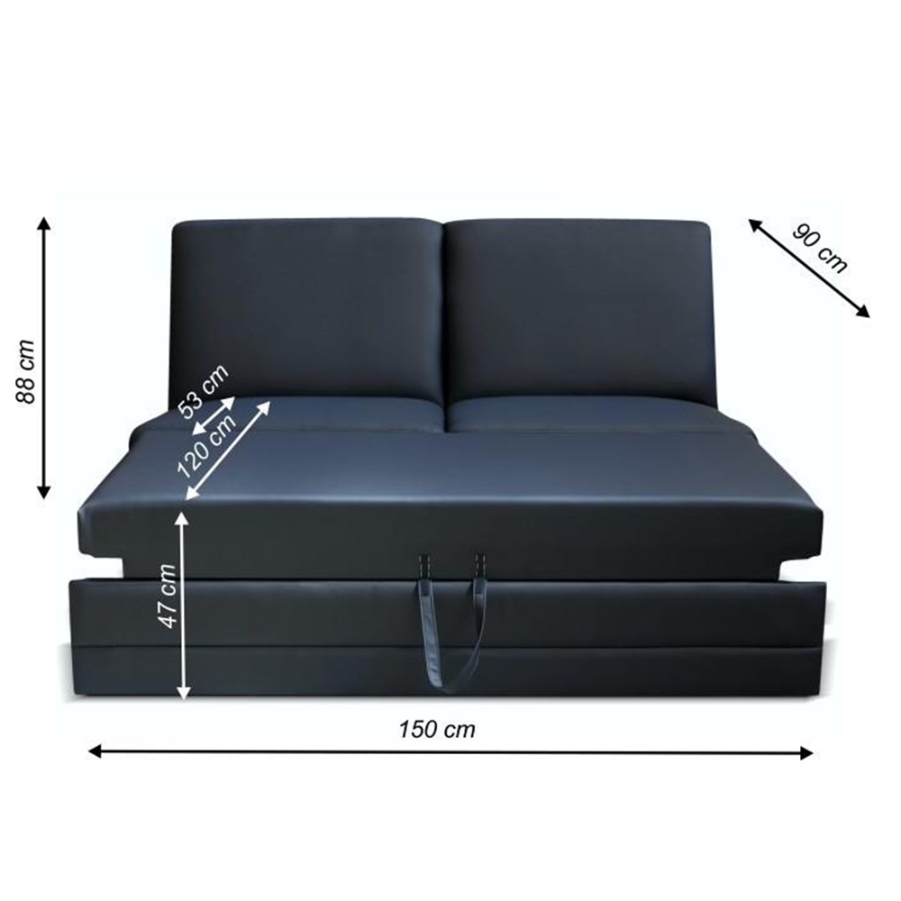 3-sed s rozkladom, BITER 3 BB ZF Materiál: ekokoža Oderuodolnosť textílie podľa testu Martindale: 100 000 oderov Farba: čierna Rozmery (ŠxHxV): 150x90x88 cm Výška spodného priestoru od podlahy: 3 cm Nosnosť na osobu: 90 kg Dodacia lehota 8-10 týždňov. Ponúkame vám možnosť zvoliť si farebný odtieň zo siedmich farieb látky Cablo a zo siedmich farieb ekokože. Odtiene nájdete v priloženom vzorkovníku. Výber farebného odtieňa poznačte pri objednávaní priamo do poznámky. Pri individuálnej objednávke je potrebné zaplatiť 10% zálohu z danej sumy. Po uhradení zálohy bude Vaša požiadavka zadaná do výroby. Doba dodania 6-8 týždňov. Cena takto zloženej sedačky v inej farbe závisí od počtu jednotlivých dielov, ktoré ju tvoria. Odporúčame preveriť si konečnú cenu.