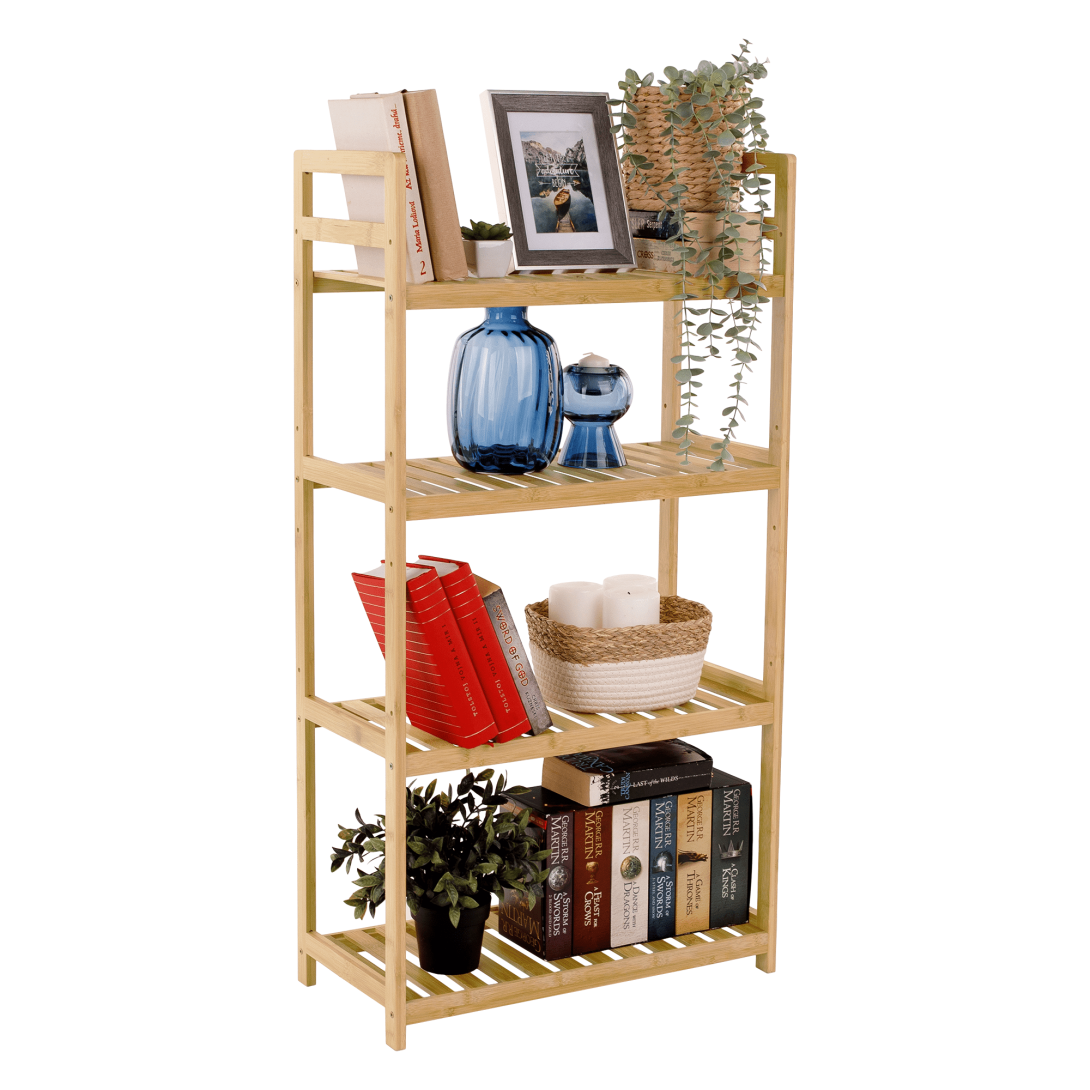 KONDELA 4-policový regál, prírodný bambus, FIORE TYP 2