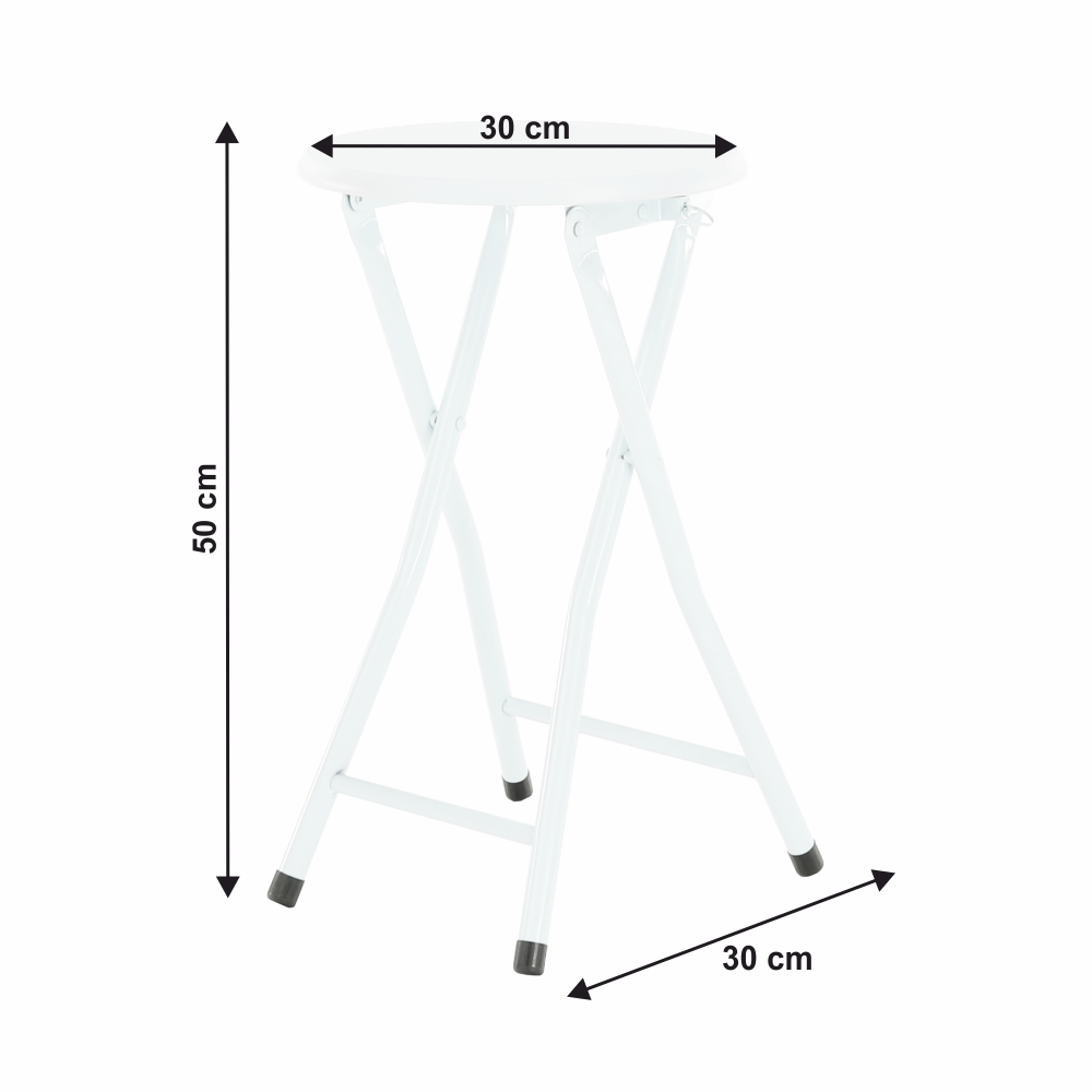 Stolička Materiál: MDF+kov, prevedenie: biela.Rozmery ŠxV: 30x50 cm.Nosnosť stoličky: 80 kg