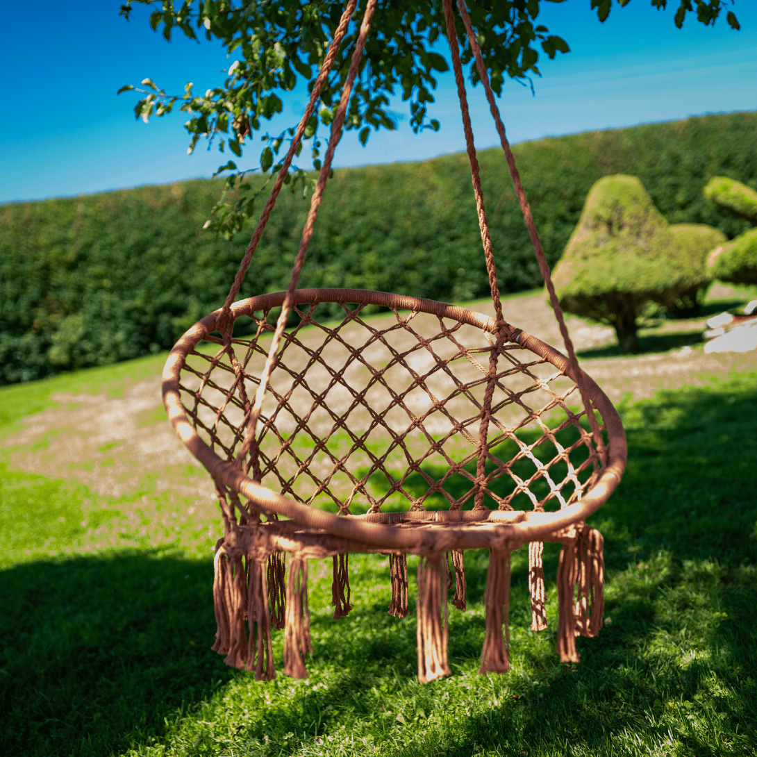 Závesné kreslo AMADOMateriál: 100% bavlnaPrevedenie: béžovohnedáRozmery (ŠxHxV): 80x120 cmPriemer v spodnej časti: 60 cmSúčasťou balenia sú 4 závesné lanáNosnosť do 120 kg