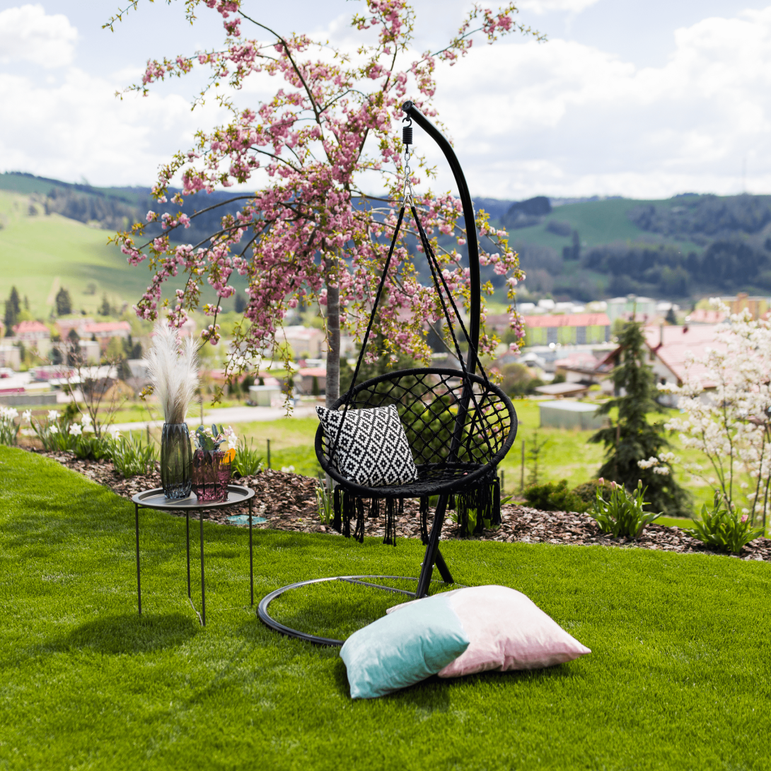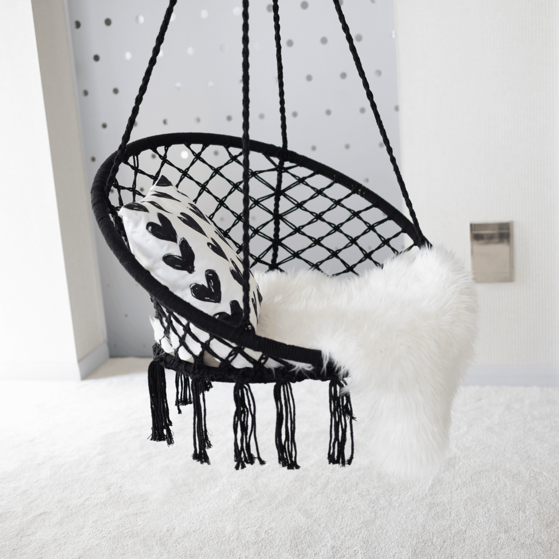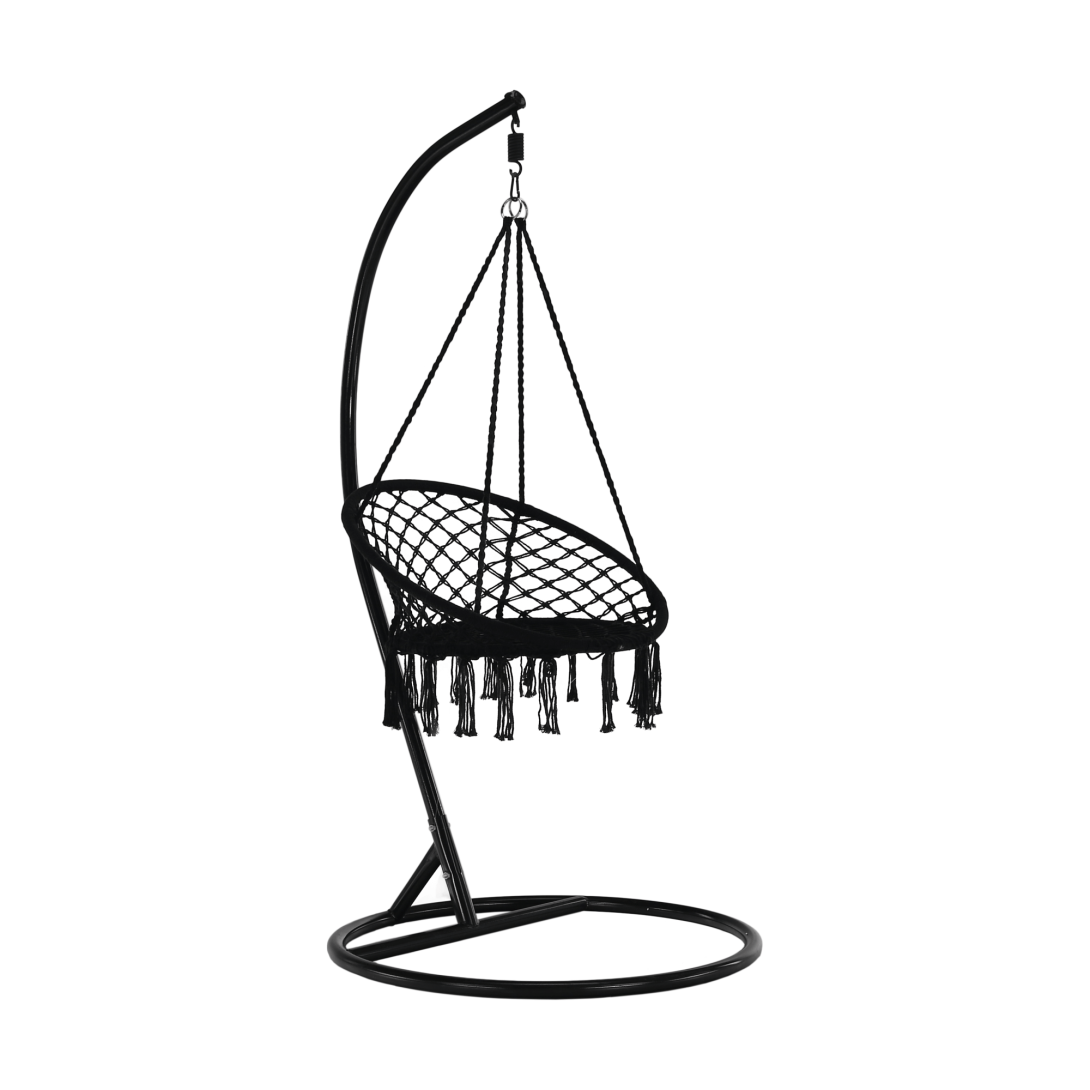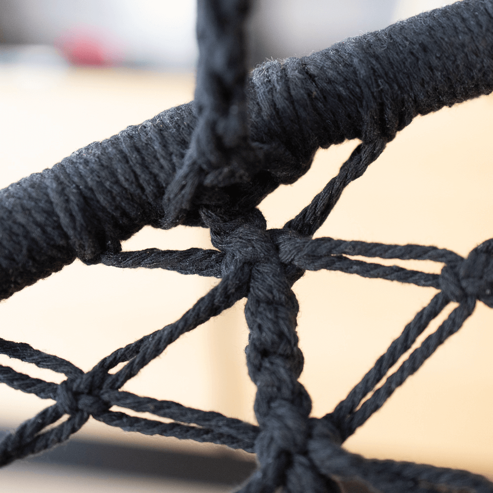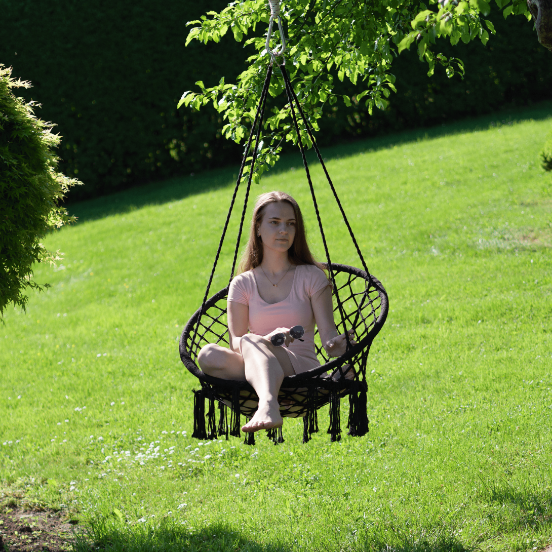 Závesné kreslo AMADOMateriál: 100% bavlnaPrevedenie: čiernaRozmery (ŠxHxV): 80x120 cmPriemer v spodnej časti: 60 cmSúčasťou balenia sú 4 závesné lanáNosnosť do 120 kg