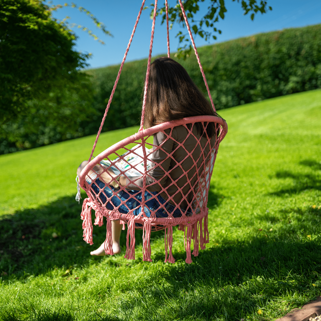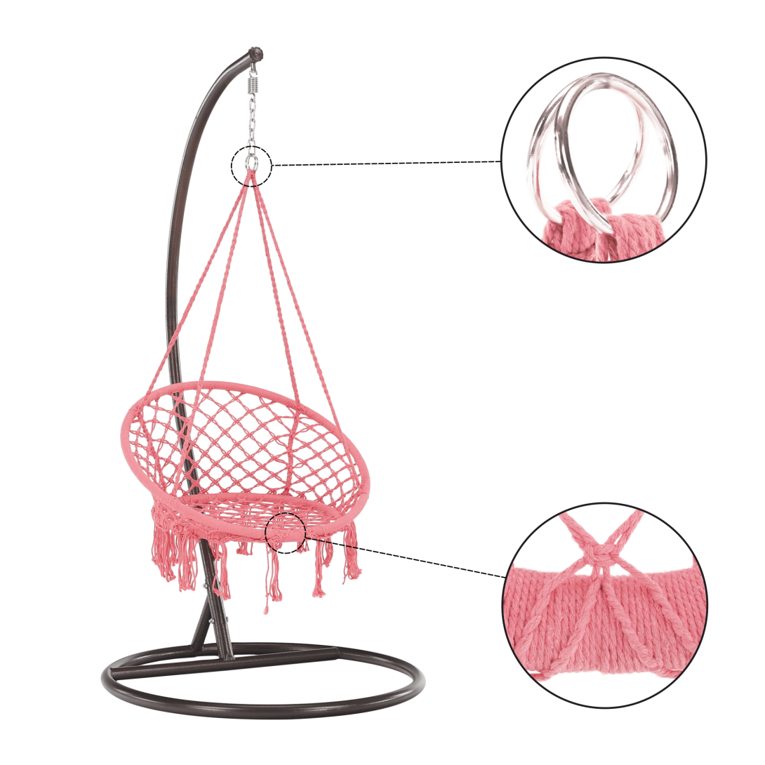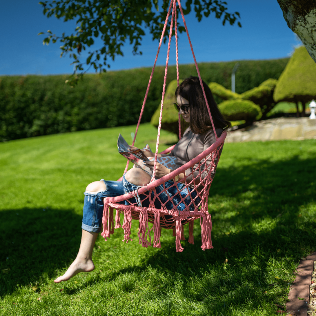 Závesné kreslo AMADOMateriál: 100% bavlnaPrevedenie: ružováRozmery (ŠxHxV): 80x120 cmPriemer v spodnej časti: 60 cmSúčasťou balenia sú 4 závesné lanáNosnosť do 120 kg