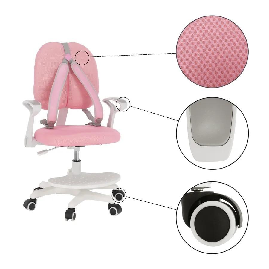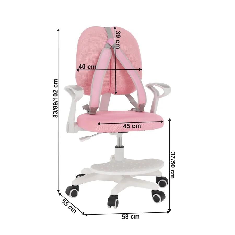 Každý rodič chce pre svoju ratolesť to najlepšie a výnimkou nie je ani sedenie pri stole. Všetky zručnosti ako písanie, kreslenie, aj učenie veľmi ovplyvňuje správne vybavenie pracovného kútika. Práve preto venujte pozornosť výberu pohodlnej stoličky. ANAIS je ergonomické kreslo, ktoré si zamiluje každé dieťa. Ide o otočnú rastúcu stoličku, ktorá sa prispôsobí každému žiakovi či študentovi. Kreslo vyniká multifunkčnosťou, pohodlnosťou a moderným dizajnom. Vek dieťaťa pri tomto kresle vôbec nerozhoduje. Pýtate sa prečo? Anais má totiž funkciu nastaviteľnej výšky sedu, a navyše aj nastaviteľnú hĺbku sedu. Rastie teda spolu s dieťaťom, čo je zárukou toho, že kreslo nebudete musieť meniť niekoľko rokov. Pre bezpečnosť a ako opora pre unavené ruky sú tu opierky rúk, ktoré disponujú funkciou sklápania. Keď ich sklopíte dozadu, stoličku pokojne zasuniete pod stôl. Pre menšie deti je tu podnož na nohy, ktorá je výškovo nastaviteľná, a dokonca aj odnímateľná. Ak ju teda nebudete potrebovať, jednoducho ju zložíte a uschováte. Špeciálne navrhnutá opierka na chrbát má dokonalú vychytávku, ktorou sú traky. Tieto traky zabezpečujú nielen bezpečnosť, ale aj správne držanie tela, ktoré treba pri hrách či školských povinnostiach dodržiavať už od malíčka. Traky môžete kedykoľvek z kresla zložiť. Okrem toho, že kreslo prispieva k správnemu tvarovaniu chrbtice dieťaťa, znižuje zaťaženie a únavu počas učenia alebo maľovania. Stabilitu kreslu dodáva päťcípa ružica zakončená univerzálnymi kolieskami, ktoré sú vhodné na mäkké, ale aj tvrdé podlahy. Kolieska majú špeciálnu bezpečnostnú poistku (brzdu), ktorá zabraňuje tomu, aby sa kreslo posúvalo po podlahe. Keď dieťa v kresle sedí, kolieska sú zaistené. Dieťa sa svojvoľne nedokáže odsunúť od stola. Farebné prevedenie ružová/biela zapadne do každej dievčenskej izby. ANAIS nie je len stolička, je to ergonomický spoločník pre deti všetkých vekových kategórií. Všetky tieto opatrenia a funkcie zabezpečia vášmu dieťaťu dokonalý a zdravý štart do učenia a získavania ďalších vedomostí.