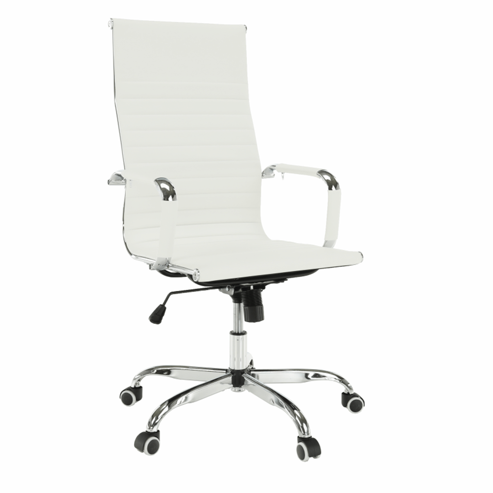 Moderné kancelárske kreslo AZURE 2 NEWFarba: bielaMateriál: ekokoža/chrómOderuodolnosť ekokože podľa testu Martindale: 100 000 oderovRozmery (ŠxHxV): 54,5x63x106-114 cm Výška sedu: 45-53 cm Výška od zeme po opierku na ruky: 68-76 cmHĺbka sedu: 48Nosnosť: 110 kgUniverzálne kolieska vhodné na mäkké aj tvrdé podlahyDodávané v demonte.