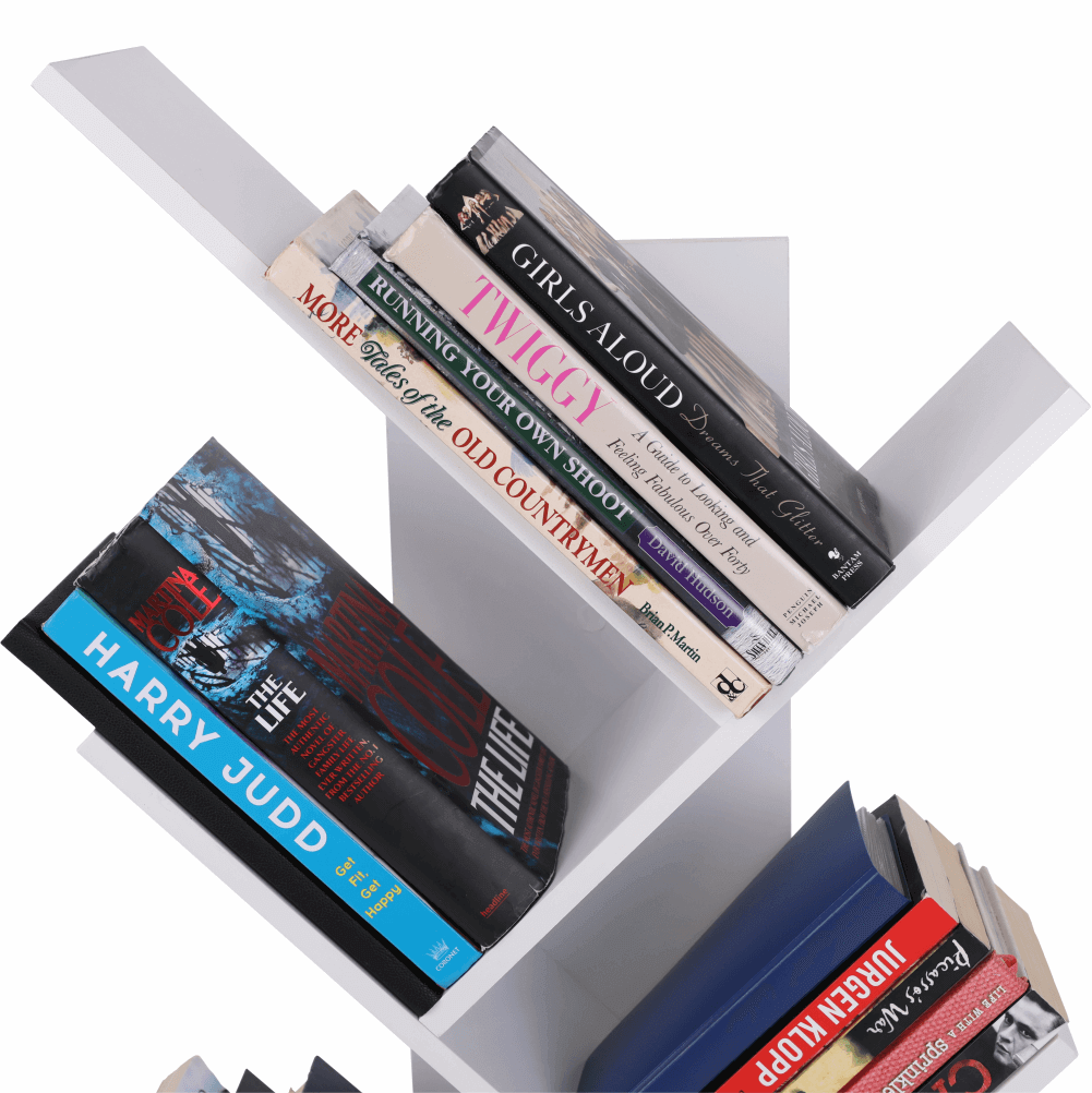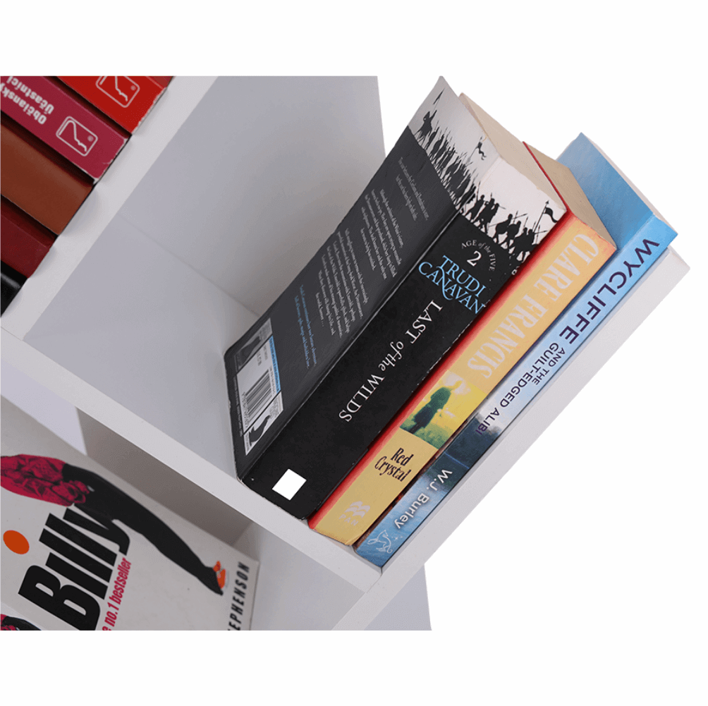 Viacúčelový regál v bielej farbe využiteľný najmä ako knižnica.Materiál: DTD laminovanáFarba: biela Rozmery (ŠxHxV): 43x20x143,5 cmHrúbka materiálu: 12 mmNosnosť regálu: 24 kg.