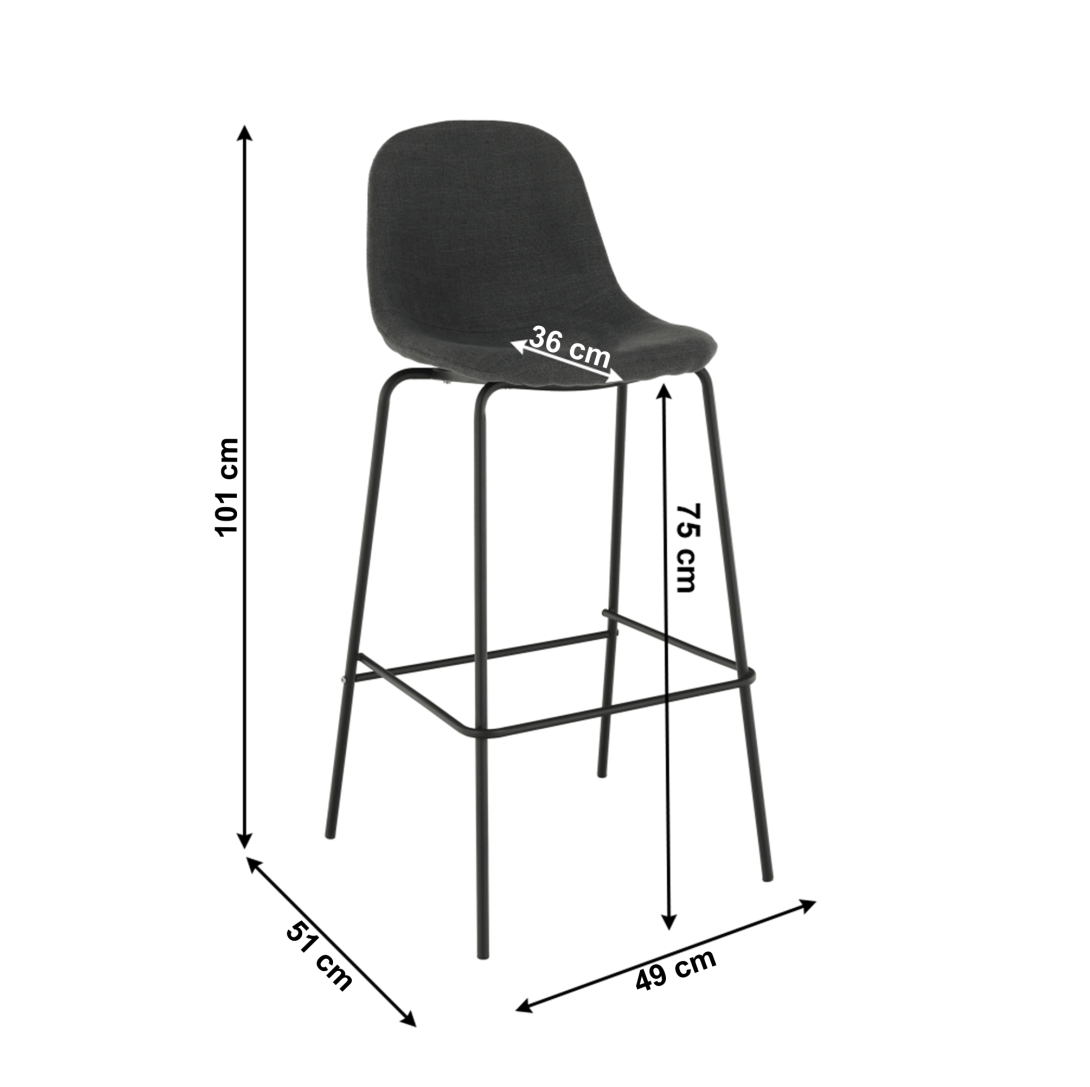 Barová stolička MARIOLA 2 NEW, materiál: látka/kov s povrchovou úpravou vo farbe čierna, Farebné prevedenie: tmavosiváOderuodolnosť textílie podľa testu Martindale: 50 000 oderovMateriál: látka/kovFarba: tmavosivá/čiernaRozmery (ŠxHxV): 49x51x101 cm Výška sedu: 75 cmHĺbka sedu: 36 cmNosnosť: 90 kg Dodávané v demonte