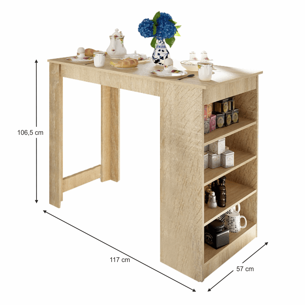 Barový stôl AUSTENFarba: dub sonomaMateriál: DTD laminovanáRozmery (ŠxHxV): 117x57x106,5 cmHrúbka materiálu: 16 mm Úložný priestorKvalitný slovenský výrobok.Dodávané v demonte.