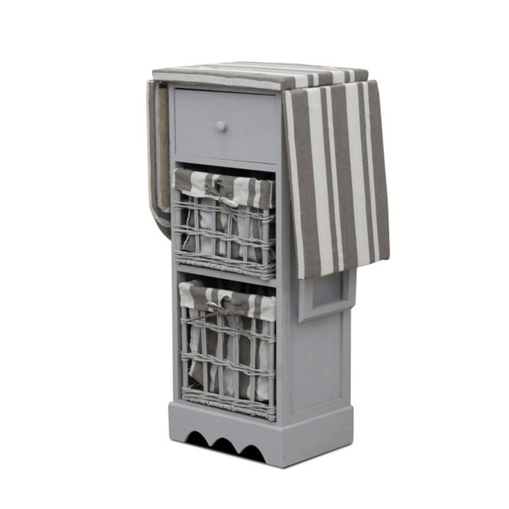 Sklápacia žehliaca doska BOND 1 s úložným priestorom a dvomi prútenými košíkmi.Rozmery (ŠxHxV): 118x30x86 cmDodávané v monte.