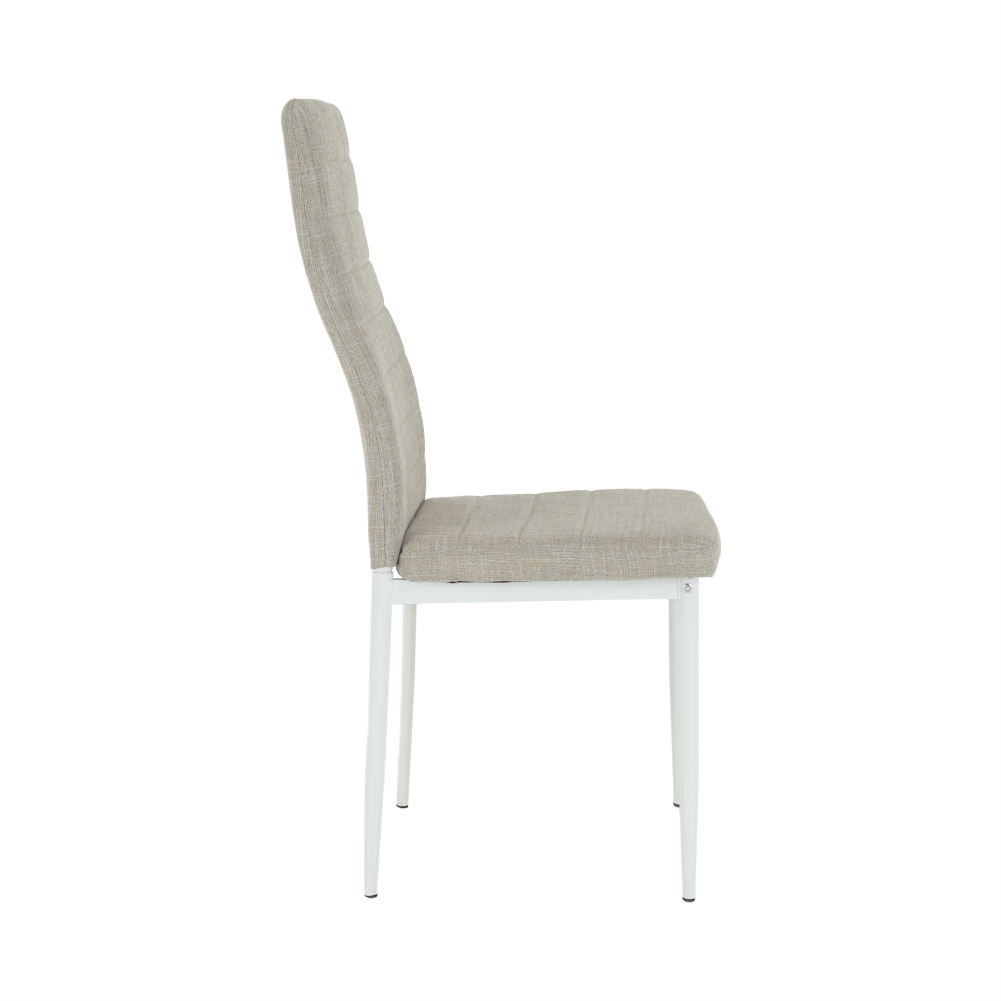 Jedálenská stolička COLETA NOVA vo farebnom prevedení béžová látka/biele kovové nohy.Oderuodolnosť textílie podľa testu Martindale: 50 000 oderovRozmery (ŠxHxV): 41x49x96 cmVýška sedu: 45 cmHĺbka sedu: 39 cm Dodávané v demonte.Nosnosť: 110 kg