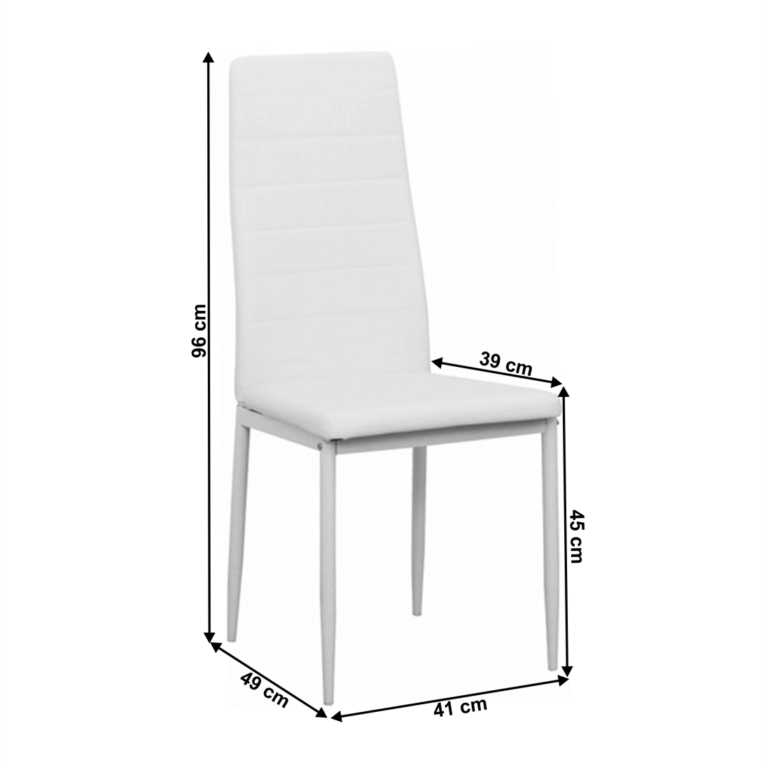 Stolička, Materiál: ekokoža biela/kovový rám biela farba,Oderuodolnosť textílie podľa testu Martindale: 100 000 oderovRozmery (ŠxHxV): 41x49x96 cm,Výška sedenia: 45 cm,Hĺbka sedu: 39 cm Nosnosť: 110 kgDodávané v demonte.