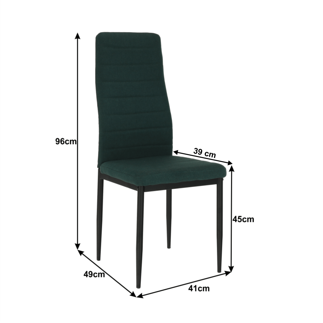 Jedálenská stolička COLETA NOVA vo farebnom prevedení smaragdová látka/čierne kovové nohy.Oderuodolnosť textílie podľa testu Martindale: 50 000 oderovRozmery (ŠxHxV): 41x49x96 cmVýška sedu: 45 cmHĺbka sedu: 39 cm Dodávané v demonte.Nosnosť: 110 kg