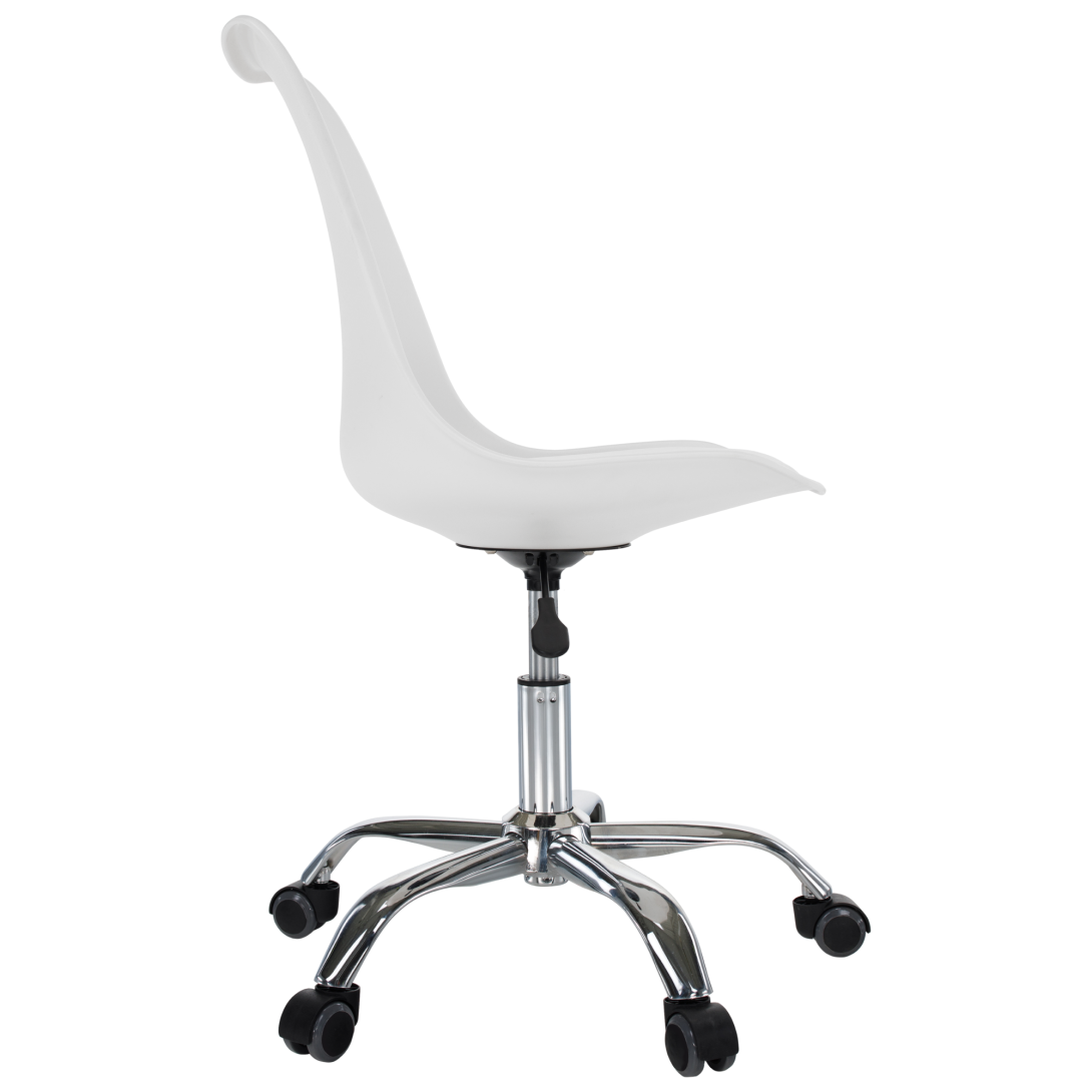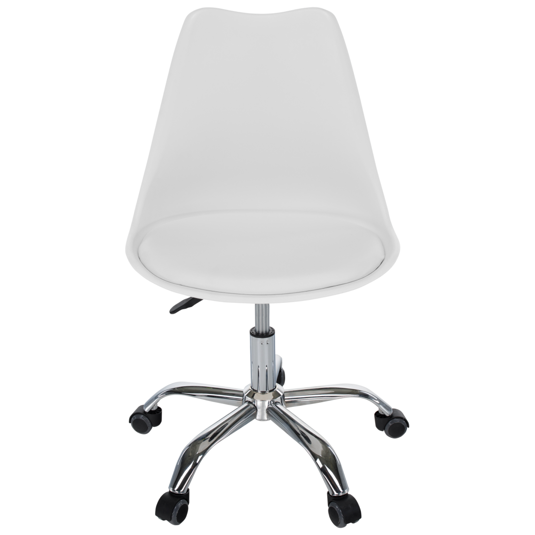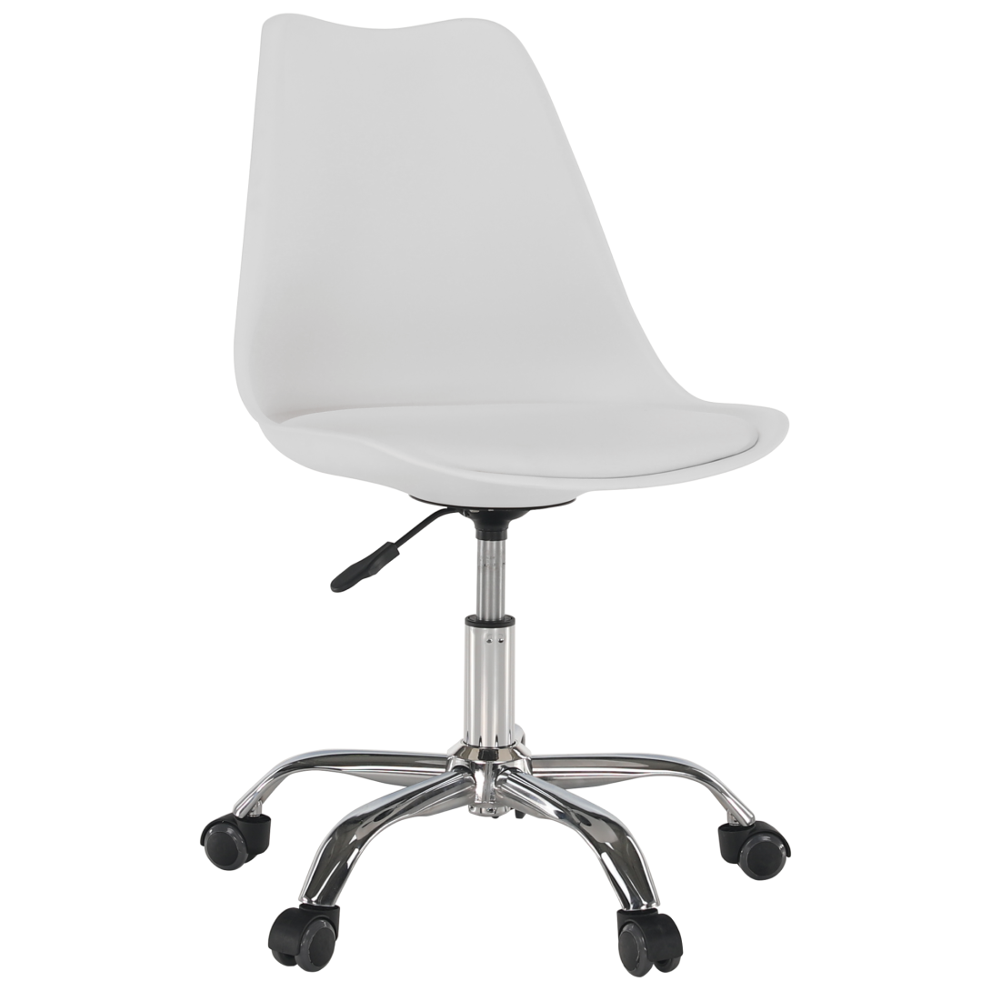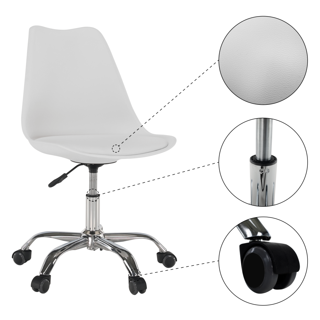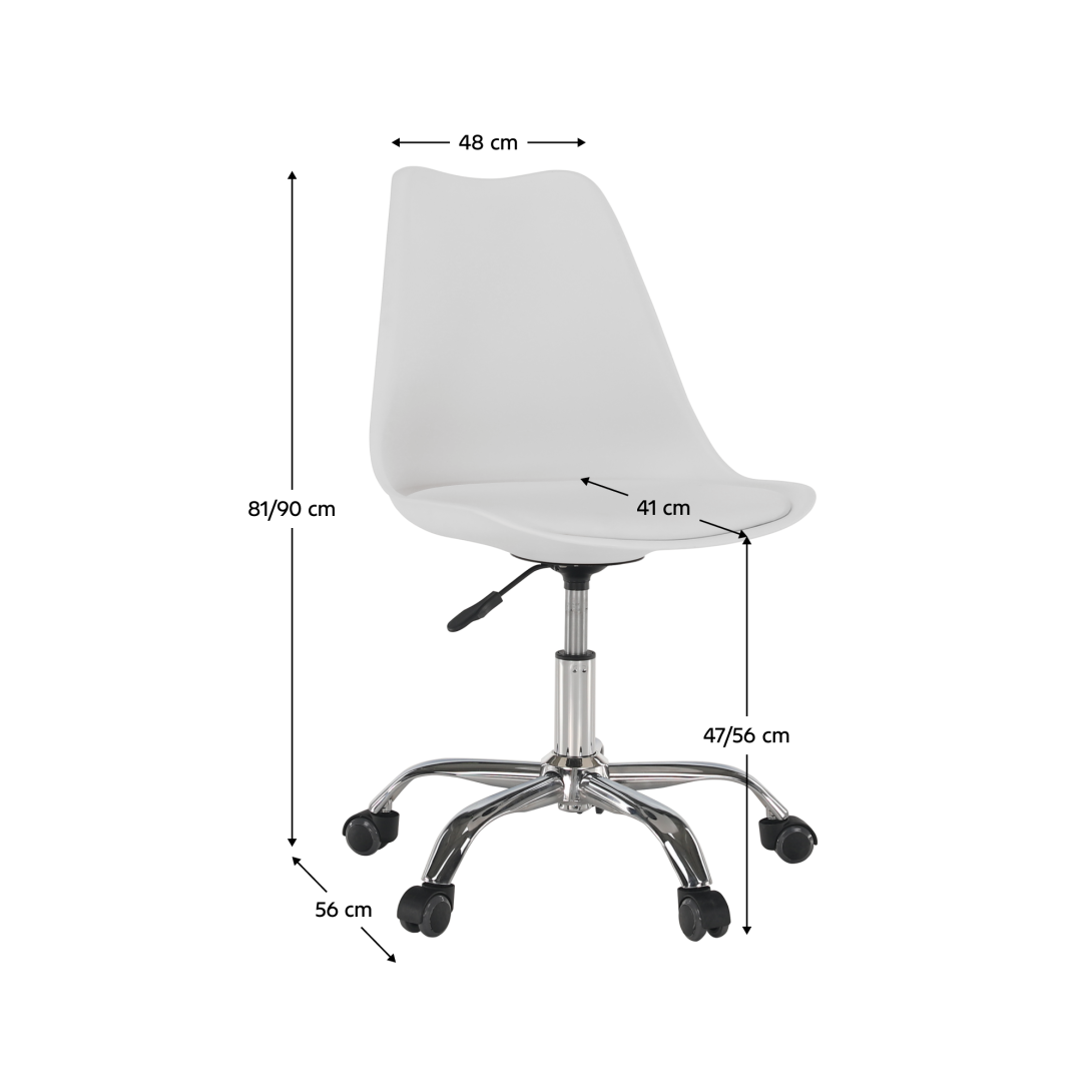 Materiál: plast/ekokoža/chrómOderuodolnosť textílie podľa testu Martindale: 100 000 oderovFarba: biela/chrómovanáRozmery (ŠxHxV): 48x56x81-90 cmNastaviteľná výška seduVýška sedu: 47-56 cmHĺbka sedu: 41cmNosnosť: 100 kgDodávané v demonte