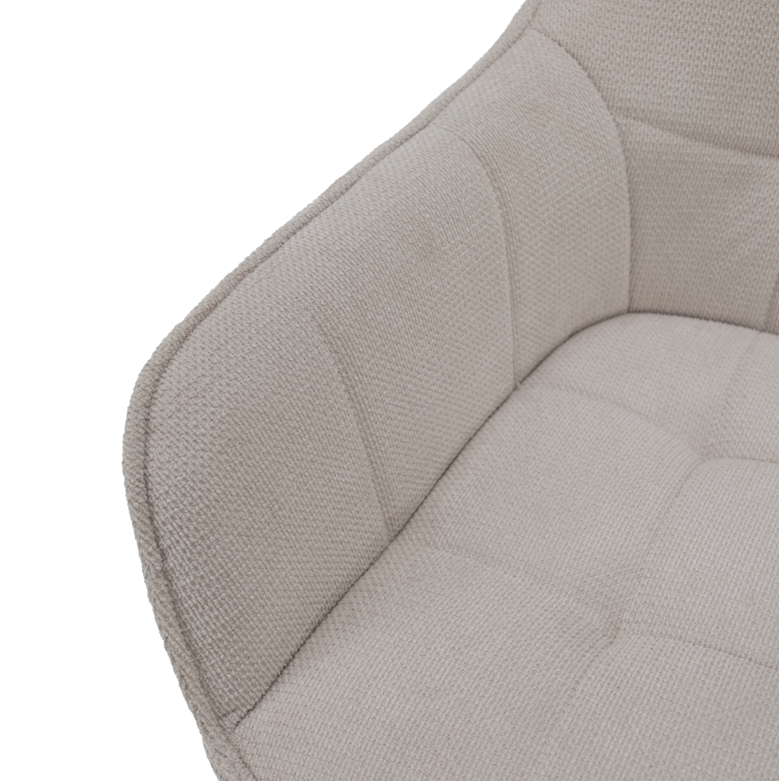 Materiál: látka Vardo 25/kovOderuodolnosť textílie podľa testu Martindale: 80 000 oderovFarba: béžová/čiernaRozmery (ŠxHxV): 58,5x62x86 cmVýška sedu: 49 cmHĺbka sedu: 47 cmŠírka sedenia: 42,5 cmVýška chrbtovej opierky: 39 cmNosnosť: 90 kgDizajnovéS mäkkou sedacou časťouDodávané v demonte