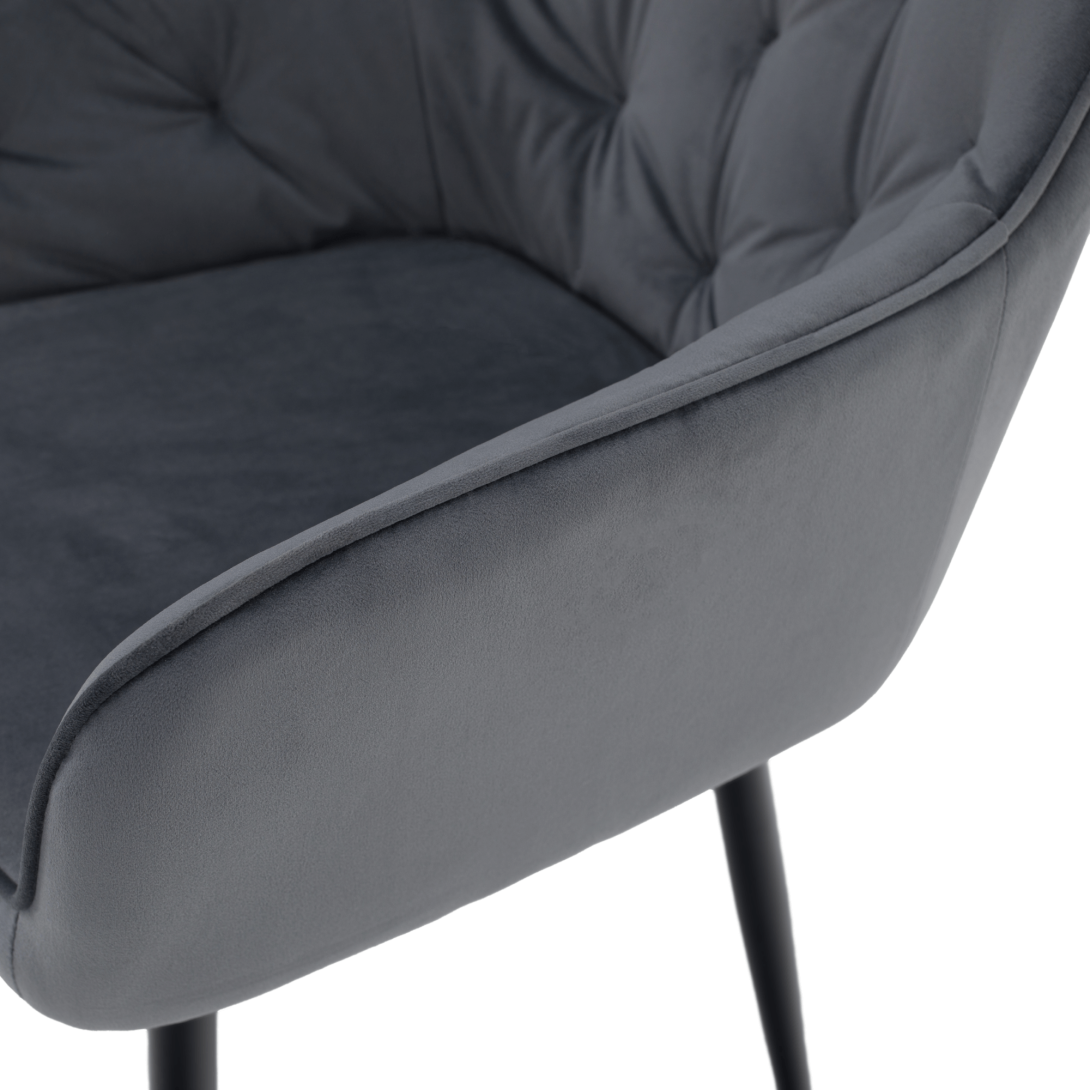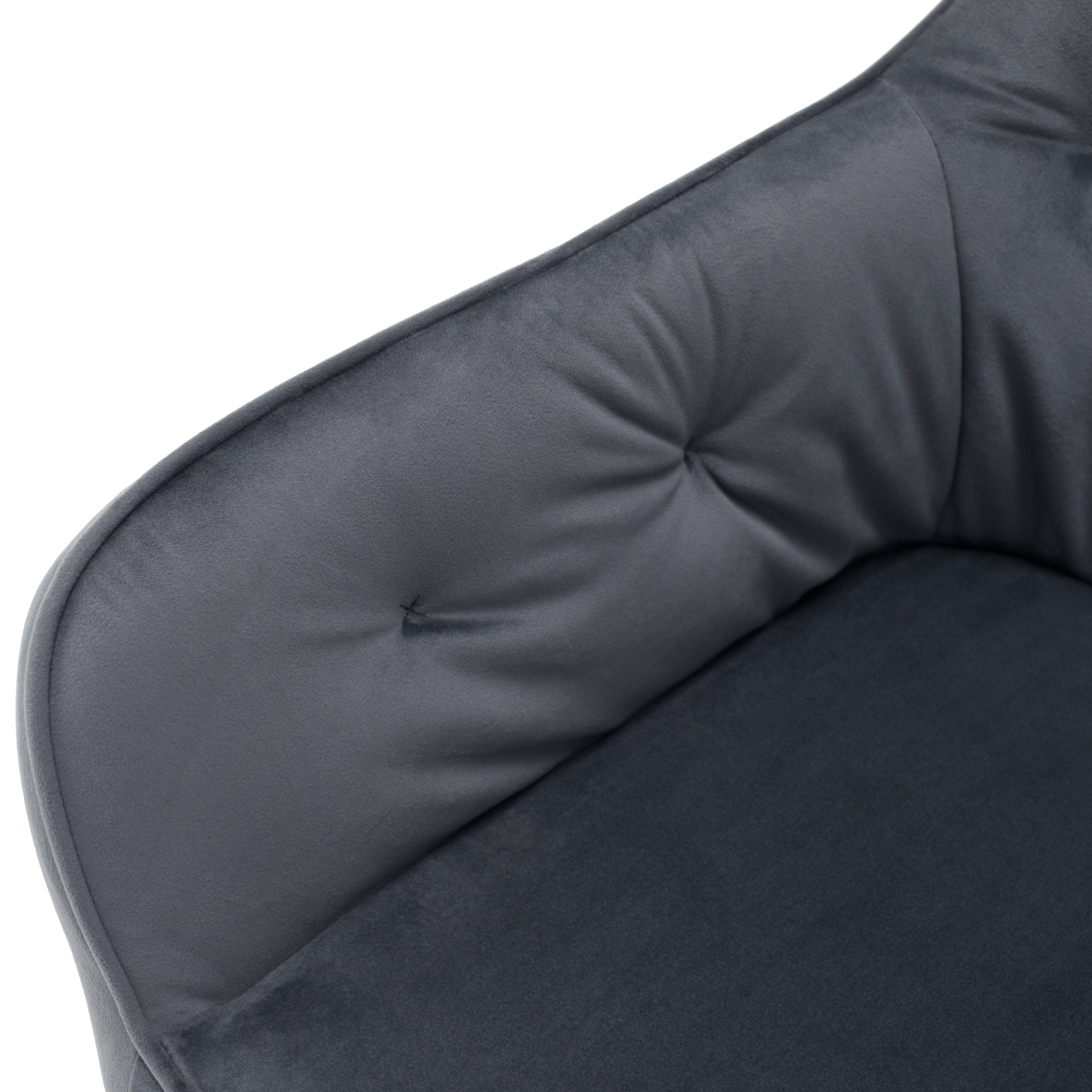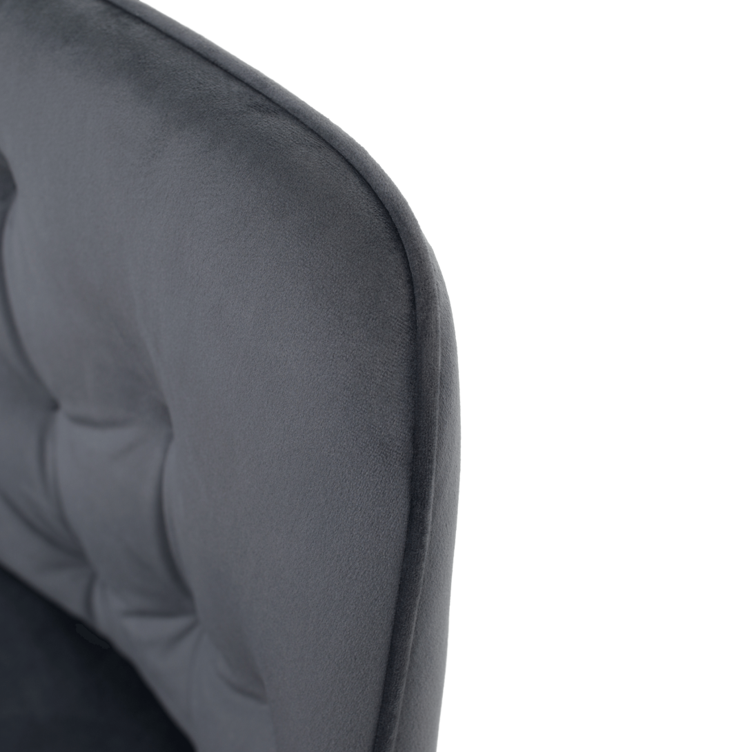 Materiál: látka Bluvel 14/kovOderuodolnosť textílie podľa testu Martindale: 80 000 oderovFarba: sivá Velvet/čiernaRozmery (ŠxHxV): 58,5x62x81 cmVýška sedu: 48 cmHĺbka sedu: 46 cmŠírka sedenia: 43 cmVýška chrbtovej opierky: 39 cmNosnosť: 90 kgDizajnovéDekoratívne prešité S mäkkou sedacou časťouDodávané v demonte