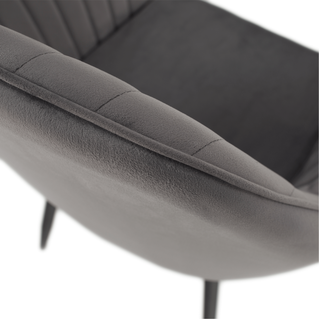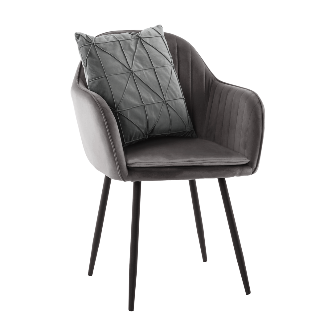 Materiál: látka Velvet/kovOderuodolnosť textílie podľa testu Martindale: 80 000 oderovFarba: sivá/čiernaRozmery (ŠxHxV): 56x55x82 cmVýška sedu: 46 cmHĺbka sedu: 42 cmVýška od zeme po opierku na ruky: 67 cmNosnosť: 100 kgDizajnovéPrešívanéS mäkkou sedacou časťouDodávané v demonte.