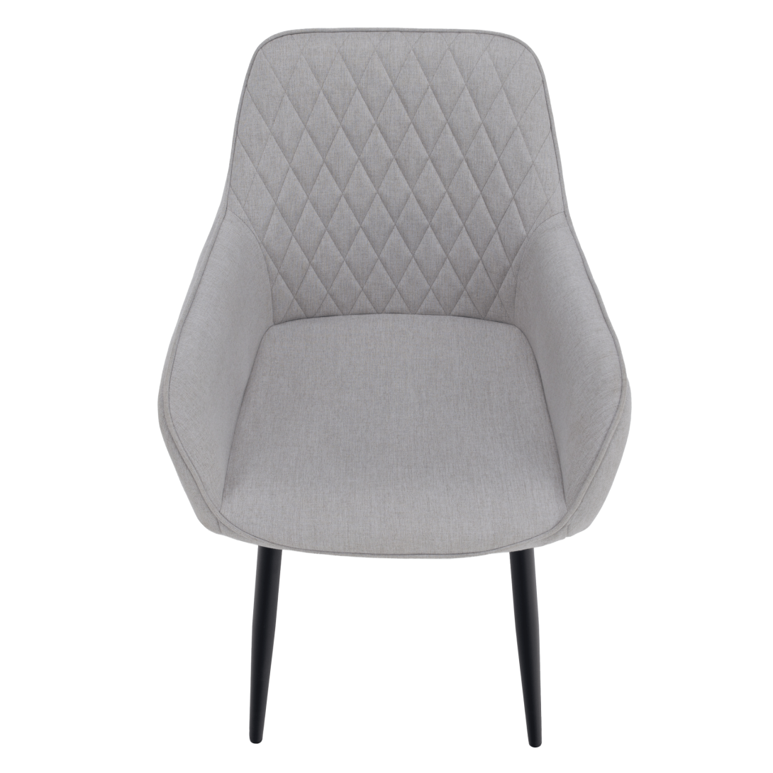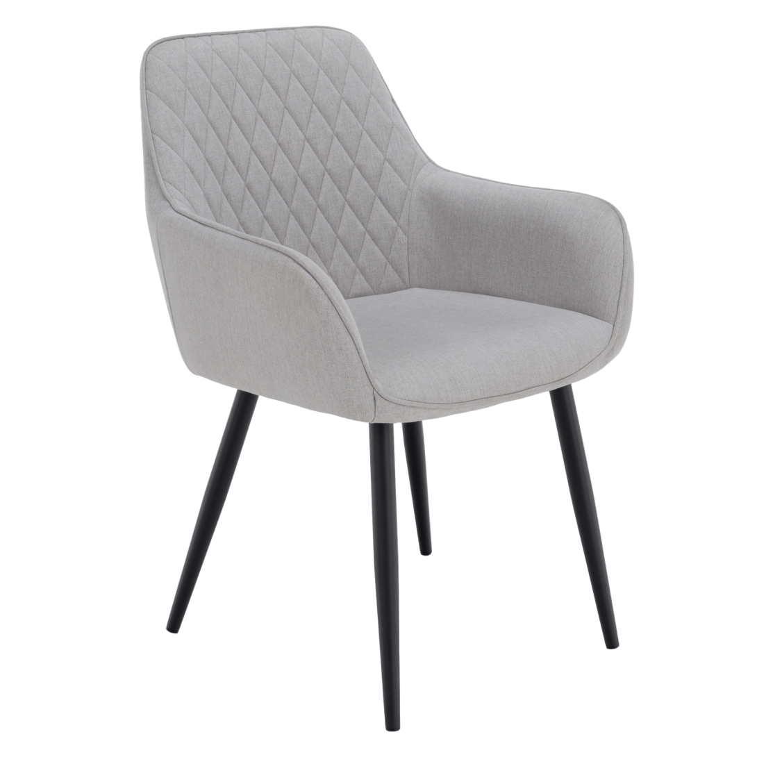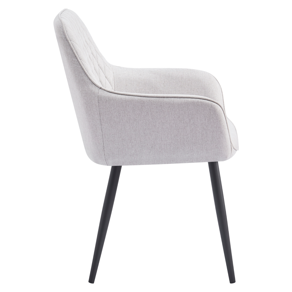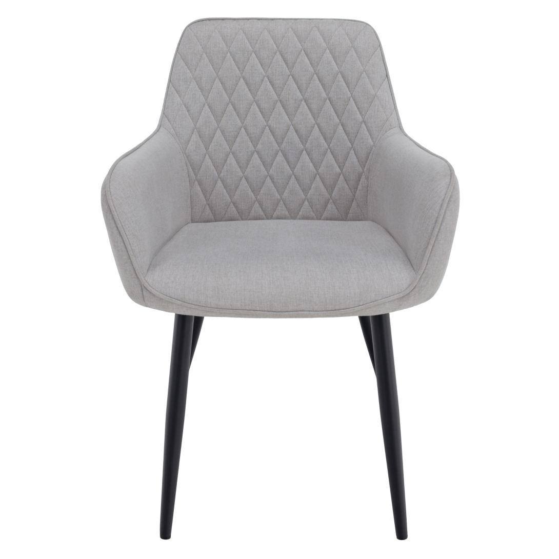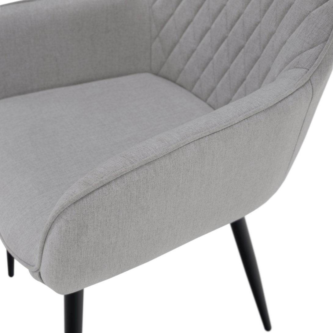 Materiál: látka Nea 03/kovOderuodolnosť textílie podľa testu Martindale: 75 000 oderovFarba: svetlosivá/čiernaRozmery (ŠxHxV): 55,5x58,5x83,5 cmVýška sedu: 47 cmHĺbka sedu: 45,5 cmŠírka sedenia: 41,5 cmVýška chrbtovej opierky: 41 cmNosnosť: 90 kgDizajnovéS mäkkou sedacou časťouDekoratívne prešitéDodávané v demonte