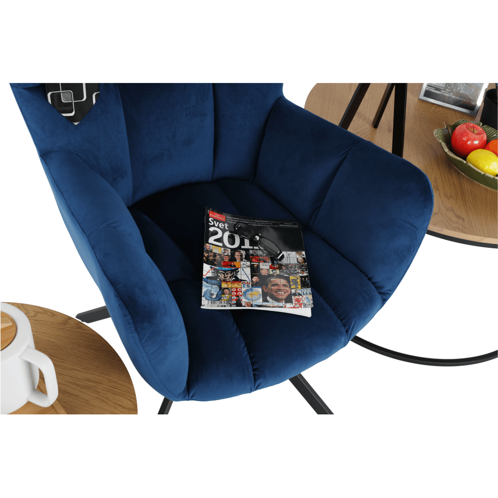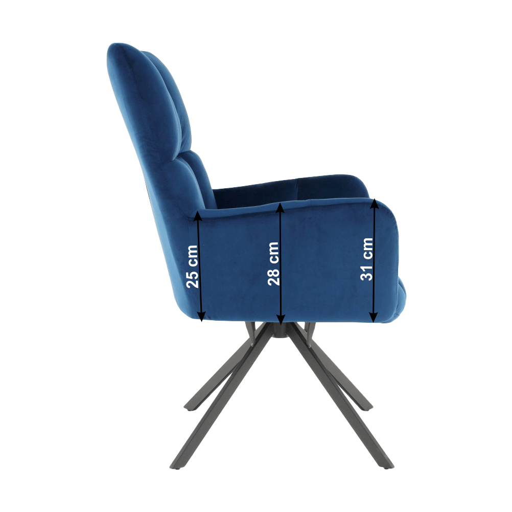 Materiál: látka Velvet/kovOderuodolnosť textílie podľa testu Martindale: 80 000 oderovFarba: modrá/čiernaRozmery (ŠxHxV): 67x72x97 cmVýška sedu: 45 cmHĺbka sedu: 47 cmŠírka sedu: 40 cmVýška chrbtovej opierky: 52 cmŠírka chrbtovej opierky: 55 cmNosnosť: 120 kgDizajnovéOtočnéExtra mäkké nadýchané čalúnenieDodávané v demonte