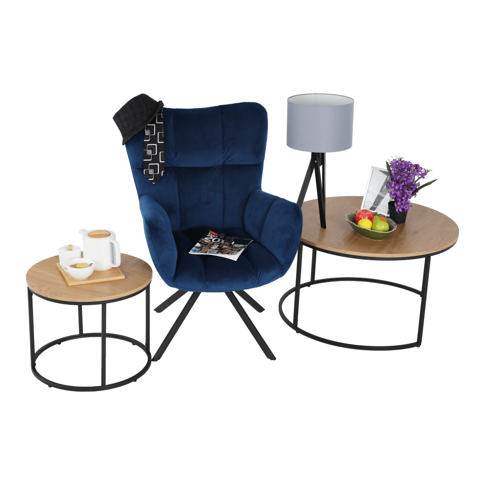 KONDELA Dizajnové otočné kreslo, modrá Velvet látka/čierna, KOMODO