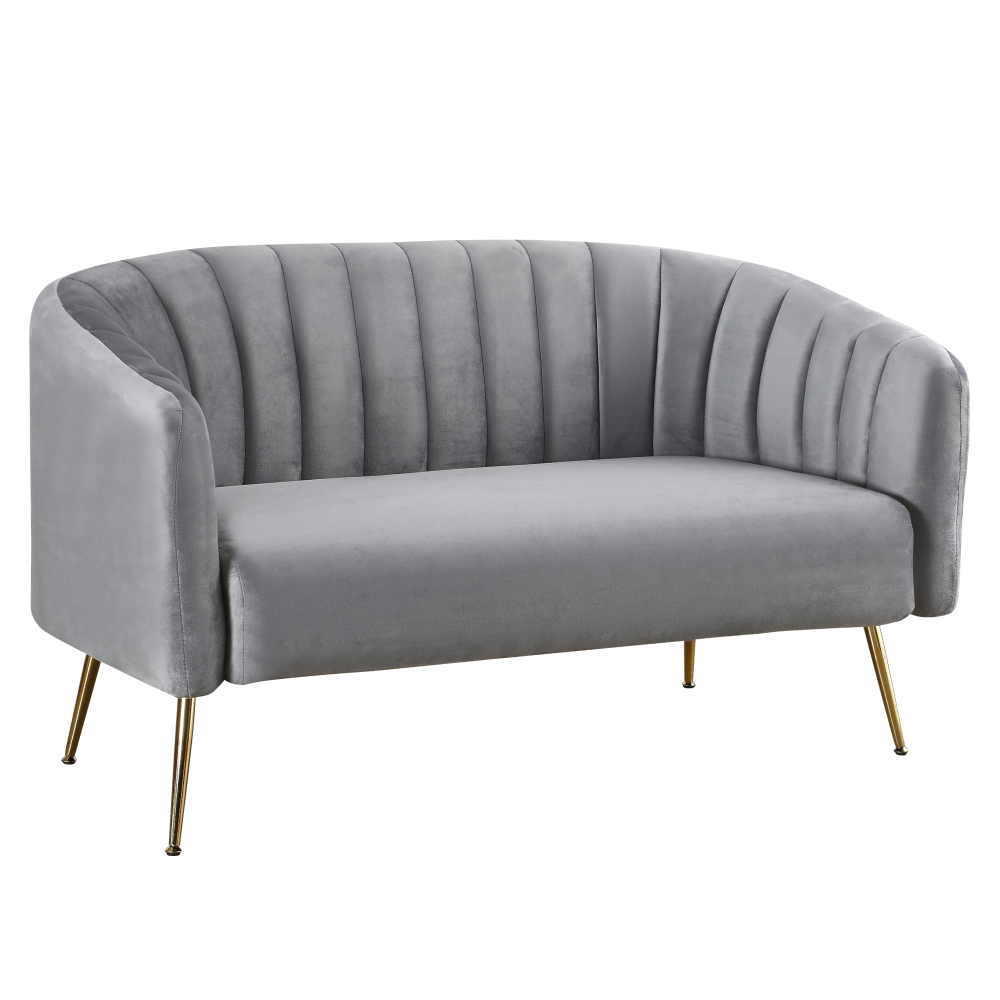 Materiál: Velvet látka/kovOderuodolnosť látky podľa testu Martindale: 95 000 oderovFarba: sivá/gold chróm-zlatýRozmery (ŠxHxV): 135x78x78 cmVýška sedu: 45 cmHĺbka sedu: 57 cmŠírka sedu: 113 cmVýška chrbtovej opierky: 33 cmVýška opierky na ruku od zeme: 64 cmVýška spodného priestoru od podlahy: 23,5 cmNosnosť na osobu: 90 kgVýplň: penaCeločalúnenéLuxusnéDekoratívne prešívanéNa nožičkáchDodávané v demonte