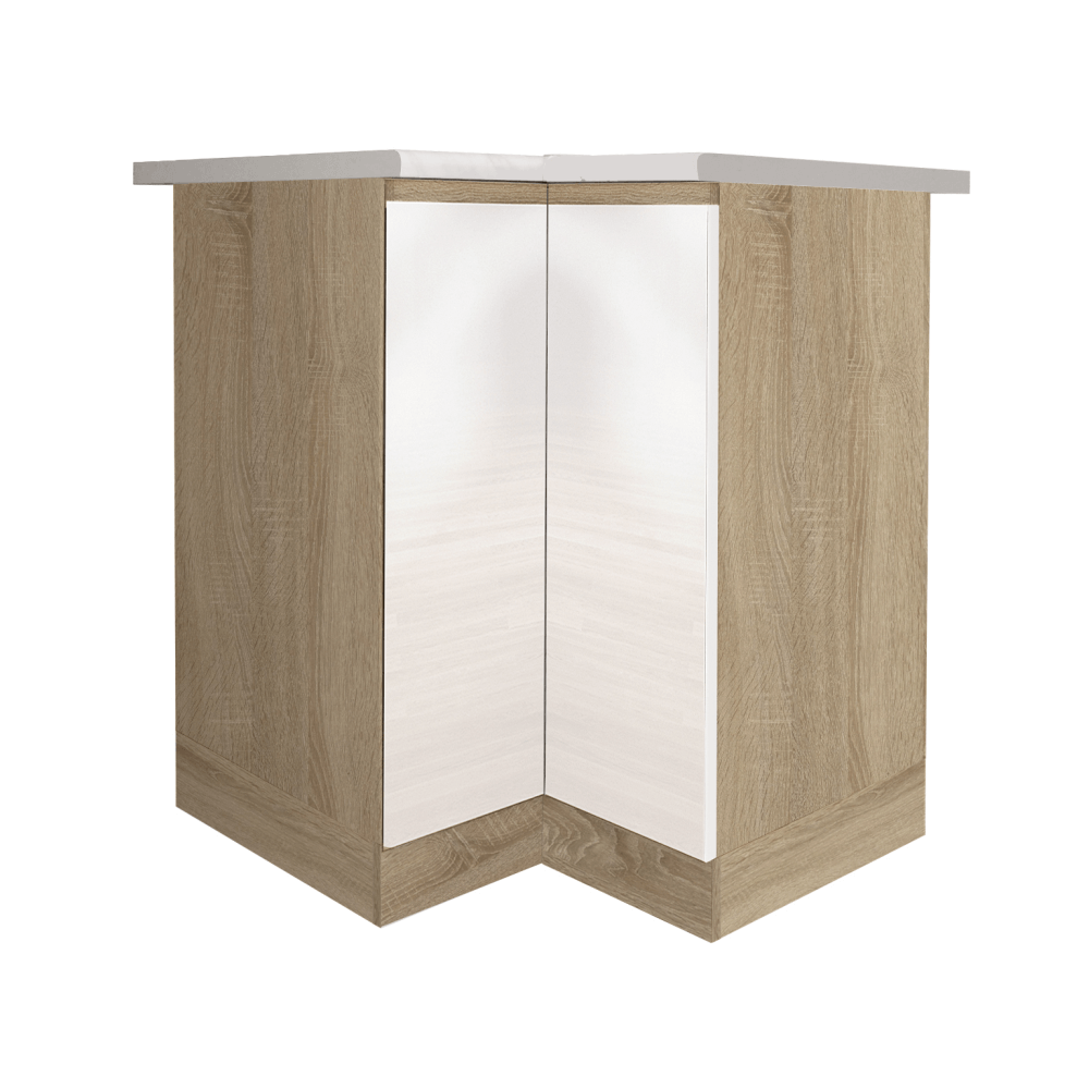 Dolná rohová skrinka DR L LINEMateriál: DTD laminovanáPrevedenie: vysoký biely lesk/dub sonoma Rozmery (ŠxHxV): 72,5x72,5x82 cmS dvierkamiSystém tichého zatvárania dvierokDodávaná s pracovnou doskou a dolnou lištouÚložný priestorModerný dizajnDodávané v demonte.Možnosť dokúpenia univerzálneho Ľ/P drezu LAY ON. Možnosť dokúpenia pracovnej dosky naviac 38 mm za 57 Eur/bm.