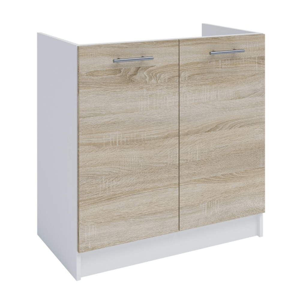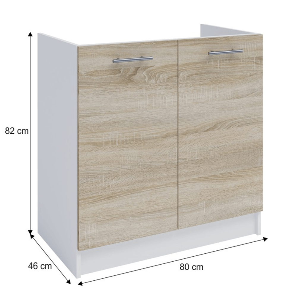 Dolná skrinka S - 80ZL,Materiál: DTD laminová,Farebné prevedenie: dub sonoma/biela,Korpus: biela, dvierka: dub sonoma.Rozmery ŠxVxH: 80x82x46 cm.Skrinky základnej zostavy sú dodávané vrátane pracovnej dosky, drezová skrinka je dodávaná bez pracovnej dosky. Sektorové skrinky sú dodávané bez pracovnej dosky.Cena pracovnej dosky je: 1bm: 49 eurMožnosť dokúpenia univerzálneho Ľ/P drezu LAY ONHrúbka materiálu: 16 mm