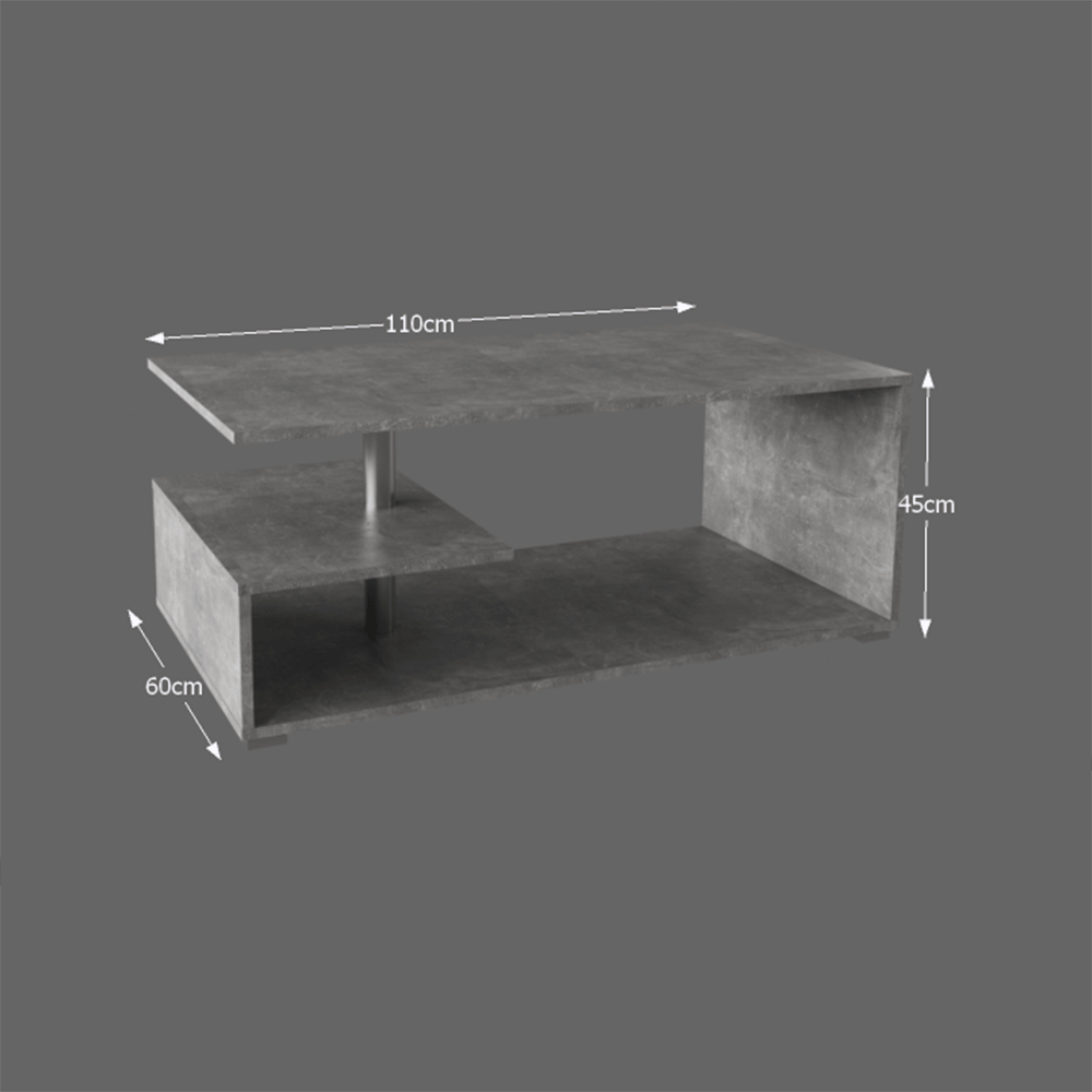 Konferenčný stolík Materiál: DTD laminovanáPrevedenie: betonRozmery (ŠxHxV): 110x60x45 cm.Hrúbka materiálu: 16 mmDodávaný v demonte.
