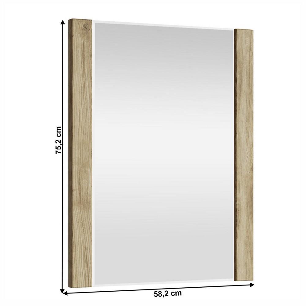 Zrkadlo, Hrúbka materiálu: 1,6 cm, Rozmery (ŠxHxV): 58,2x3,2x75,2 cm, Farba: dub navarra