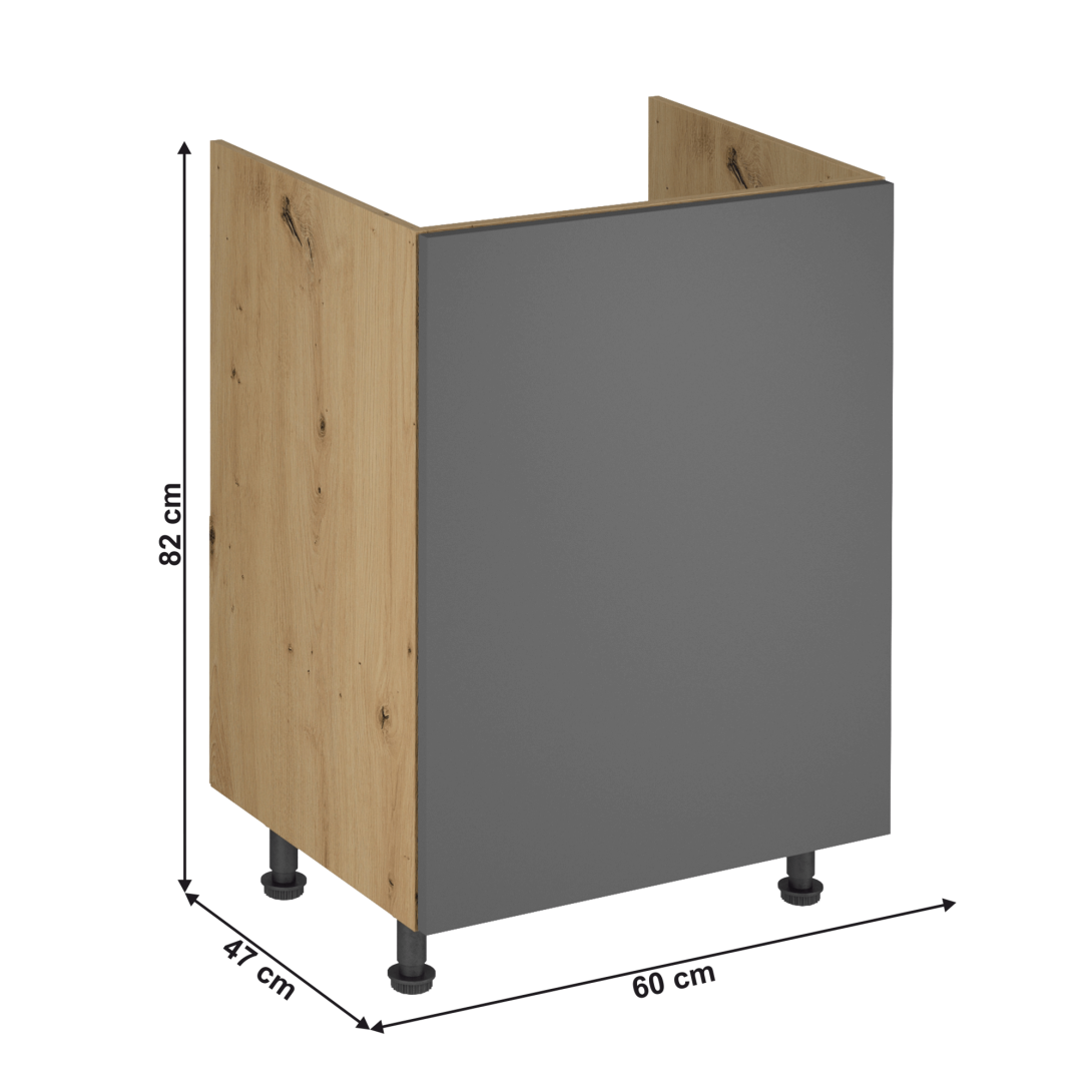 Materiál: DTD laminovanáFarba: dub artisan/sivý matRozmery (ŠxHxV): 60x47x82 cmDrezováBez drezuJednodverováHrúbka materiálu dvierka (dub artisan): 1,5 cmHrúbka materiálu dvierka (sivá MDF): 1,8 cmUniverzálne prevedenieMožnosť voľby otvárania PUSH OPENMožnosť voľby otvárania úchytkamiBez pracovnej doskyBez spodnej lišty Farba vnútornej strany: bielaDodávané v demonteCena sektorových skriniek je uvádzaná bez pracovnej dosky a spodnej lišty. Cena za pracovnú dosku dub artisan je 56 Eur/bm - hrúbka 38 mm, cena za pracovnú dosku čierny vulkán je 59 Eur/bm - hrúbka 38 mm. Možnosť dokúpenia spodnej lišty dub artisan v rozmere 1 m za cenu 10 Eur alebo v rozmere 2 m za cenu 17 Eur. Ku každej dolnej skrinke je potrebné doobjednať 2 ks úchytov na sokel cena 1 Eur/2 ks. Pri skrinkách D60S3 a D40S3 je potrebné si vybrať skrinku s úchytkou alebo systémom Push Open.