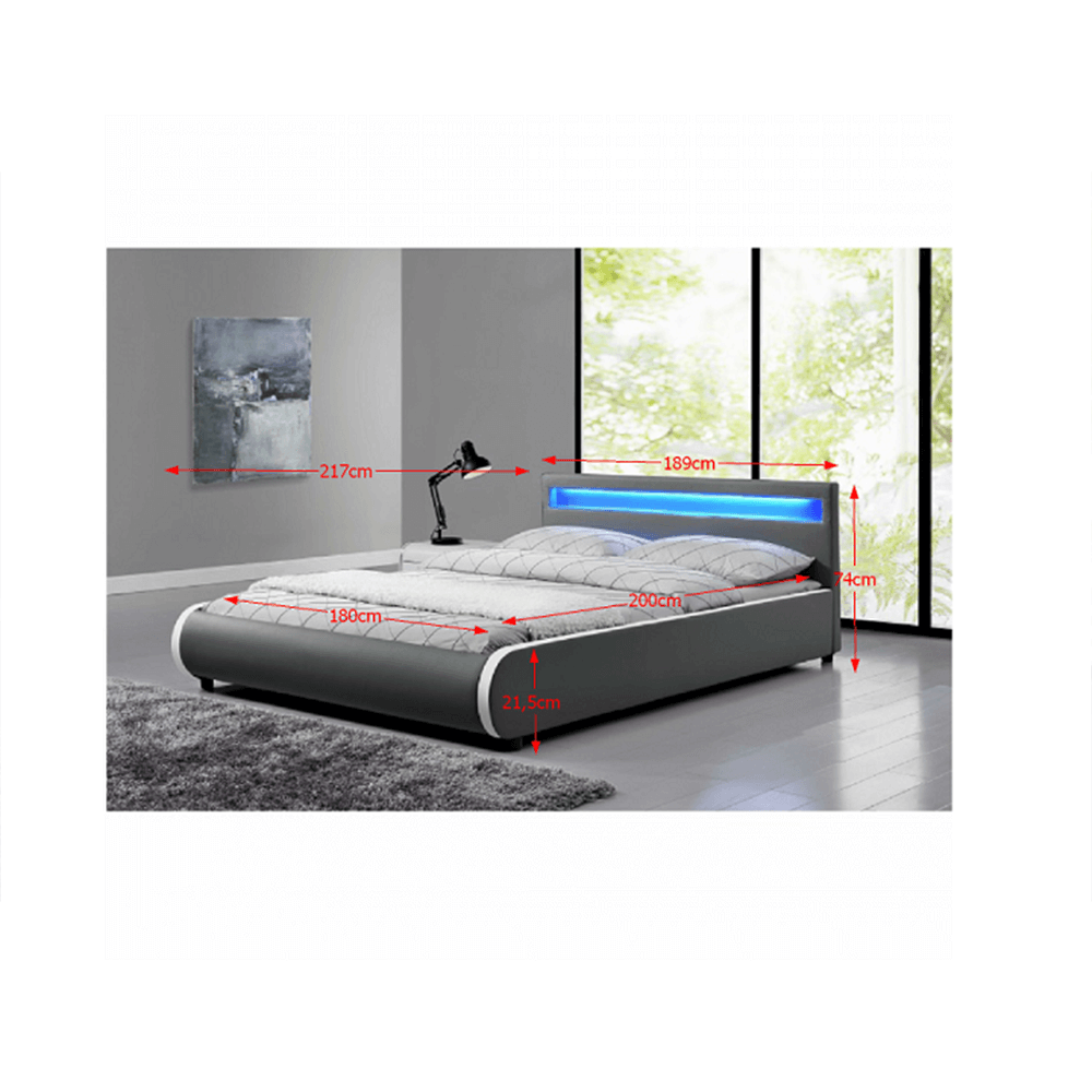 Luxusná moderná posteľ s lamelovým roštom a RGB LED osvetlením v čele posteleMateriál: ekokožaOderuodolnosť textílie podľa testu Martindale: 100 000 oderovFarba: siváRozmery (ŠxHxV): 189x217x74 cm, plocha na spanie (ŠxD): 180x200 cmVýška po rošt: 21,5 cmNosnosť: 110 kgK posteli doporučujeme zakúpiť matrac v rozmere 180x200 cm na základe našej ponuky. Dodávané v demonte.