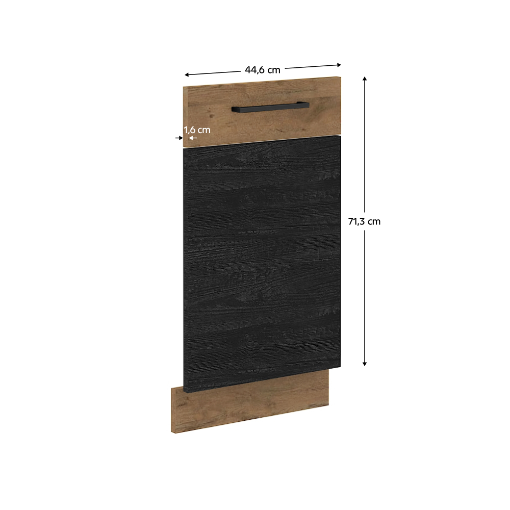 Dvierka na vstavanú umývačku riadu VEGA ZM 713x446Materiál: DTD laminovanáFarba: sivá matná/dub lancelotRozmery (ŠxHxV): 44,6x1,6x71,3 cmDodávané v demonteSpodné skrinky sú dodávané vrátane dolnej lišty, bez pracovnej dosky.Možnosť dokúpenia pracovnej dosky dub lancelot v cene 55 Eur/bm. Možnosť dokúpiť univerzálny drez LAY ON.