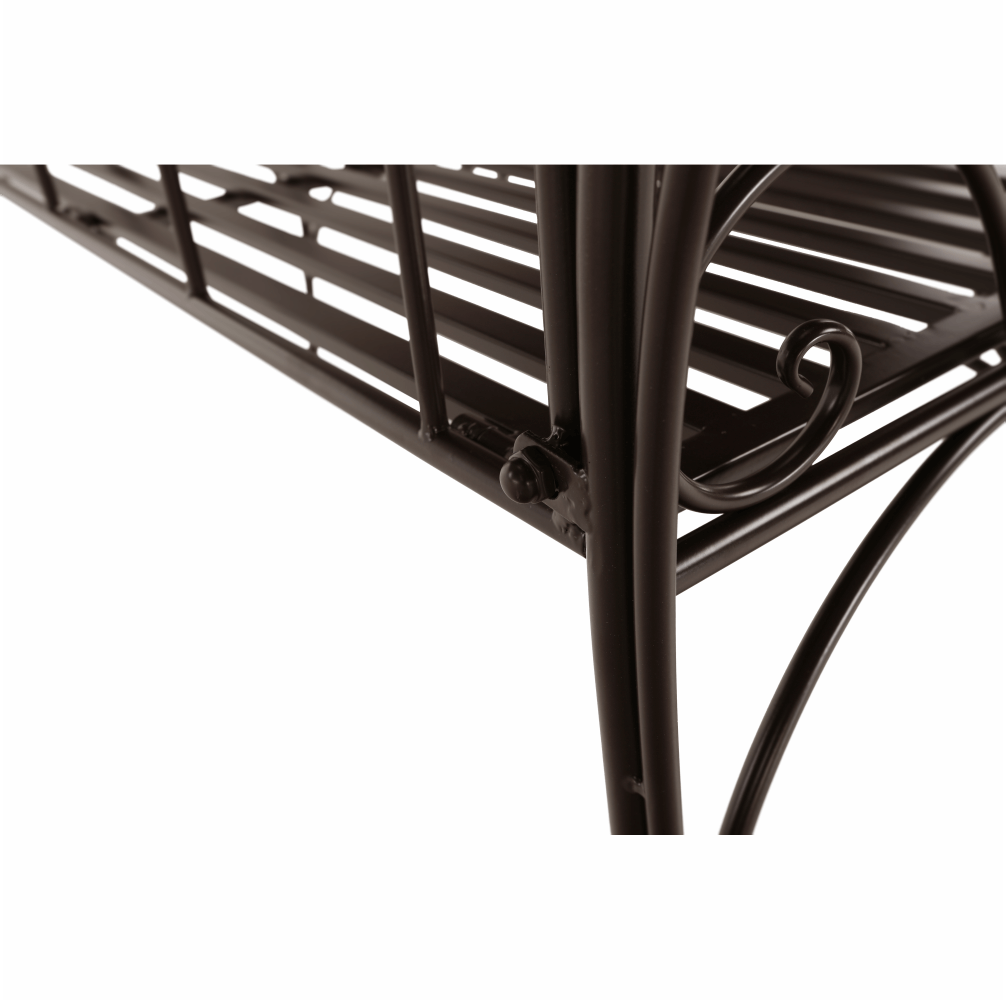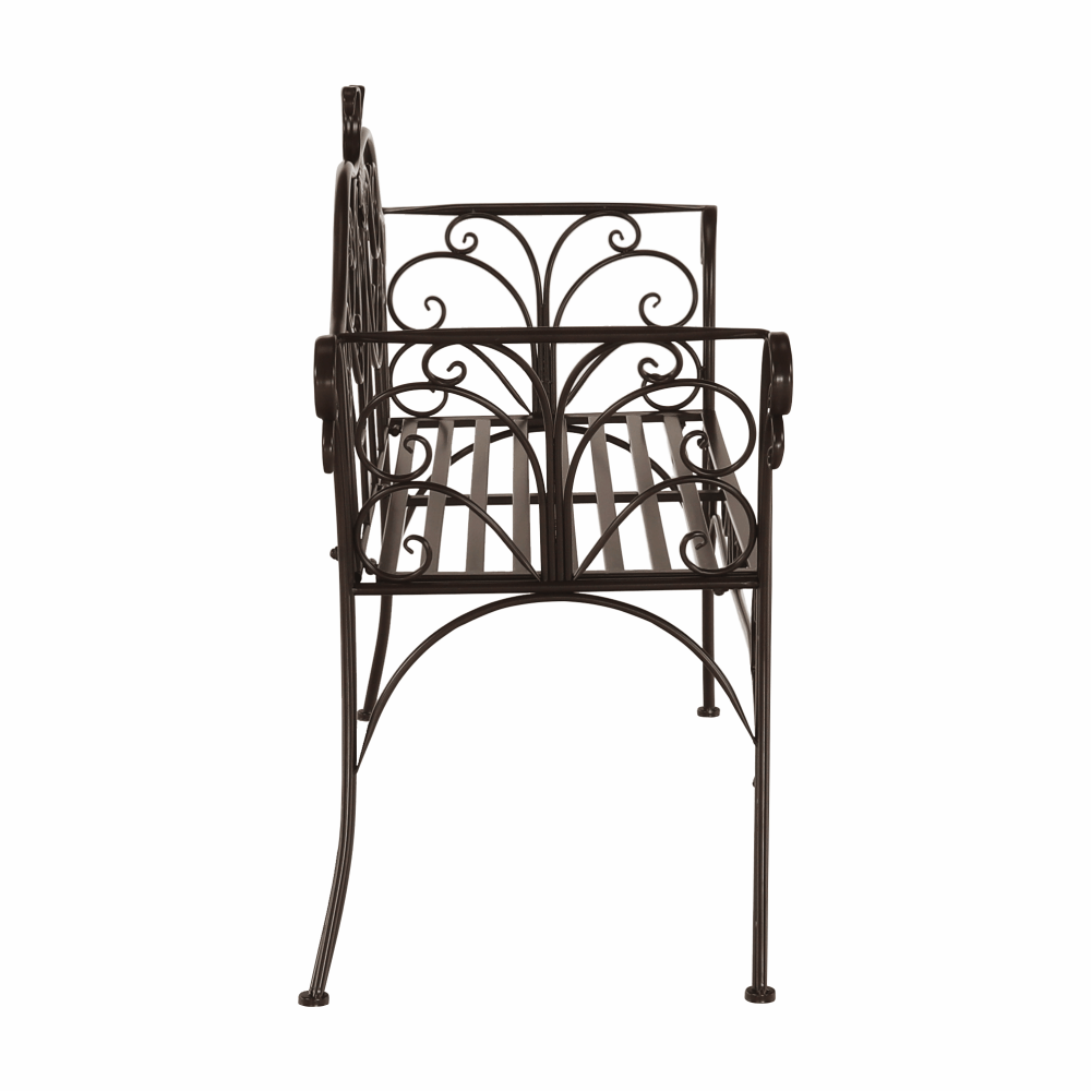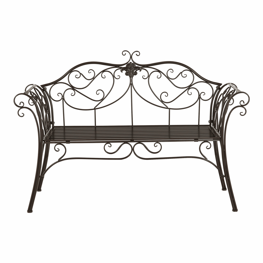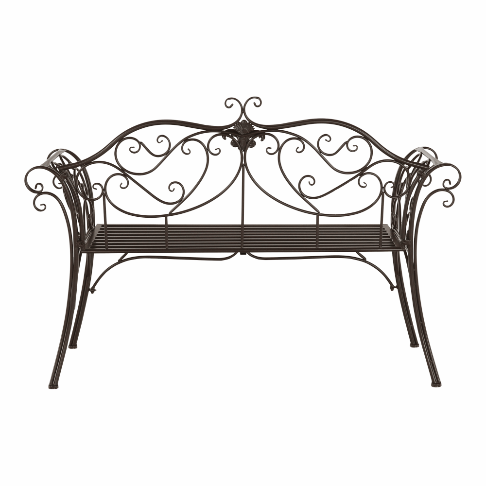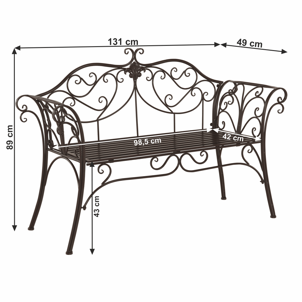 Materiál: kovFarba: hnedáRozmery (ŠxHxV): 131x49x89 cmVýška sedu: 43 cmHĺbka sedu: 42 cmŠírka sedu: 98,5 cmNosnosť: 150 kgDodávané bez vankúšovRomantický vzhľadS ozdobnými prvkamiDodávané v demonte