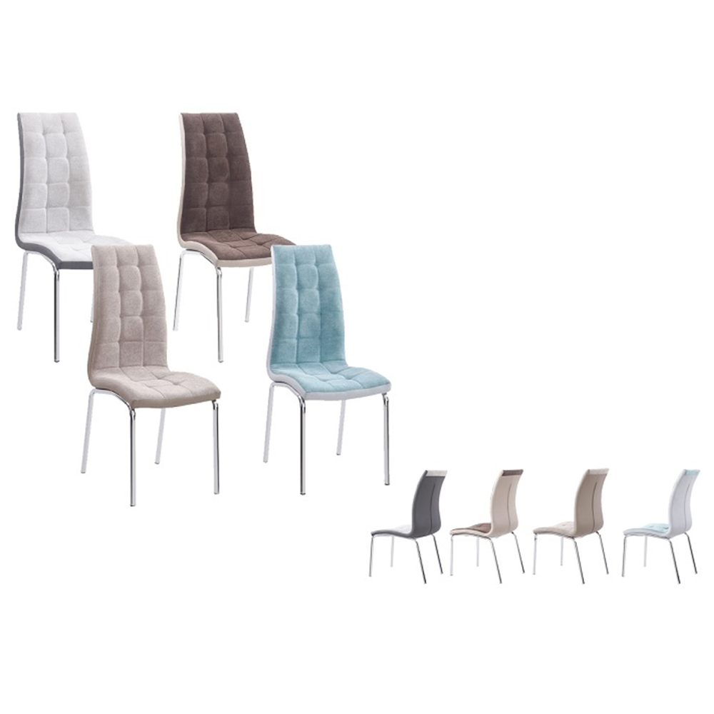 Jedálenská stolička GERDA NEWMateriál: látka/ekokoža/chróm Oderuodolnosť textílie podľa testu Martindale: 50 000/100 000 oderovFarebné prevedenie: mentolováRozmery (ŠxHxV): 42x58x103cmNosnosť: 110 kgDodávané v demonte.