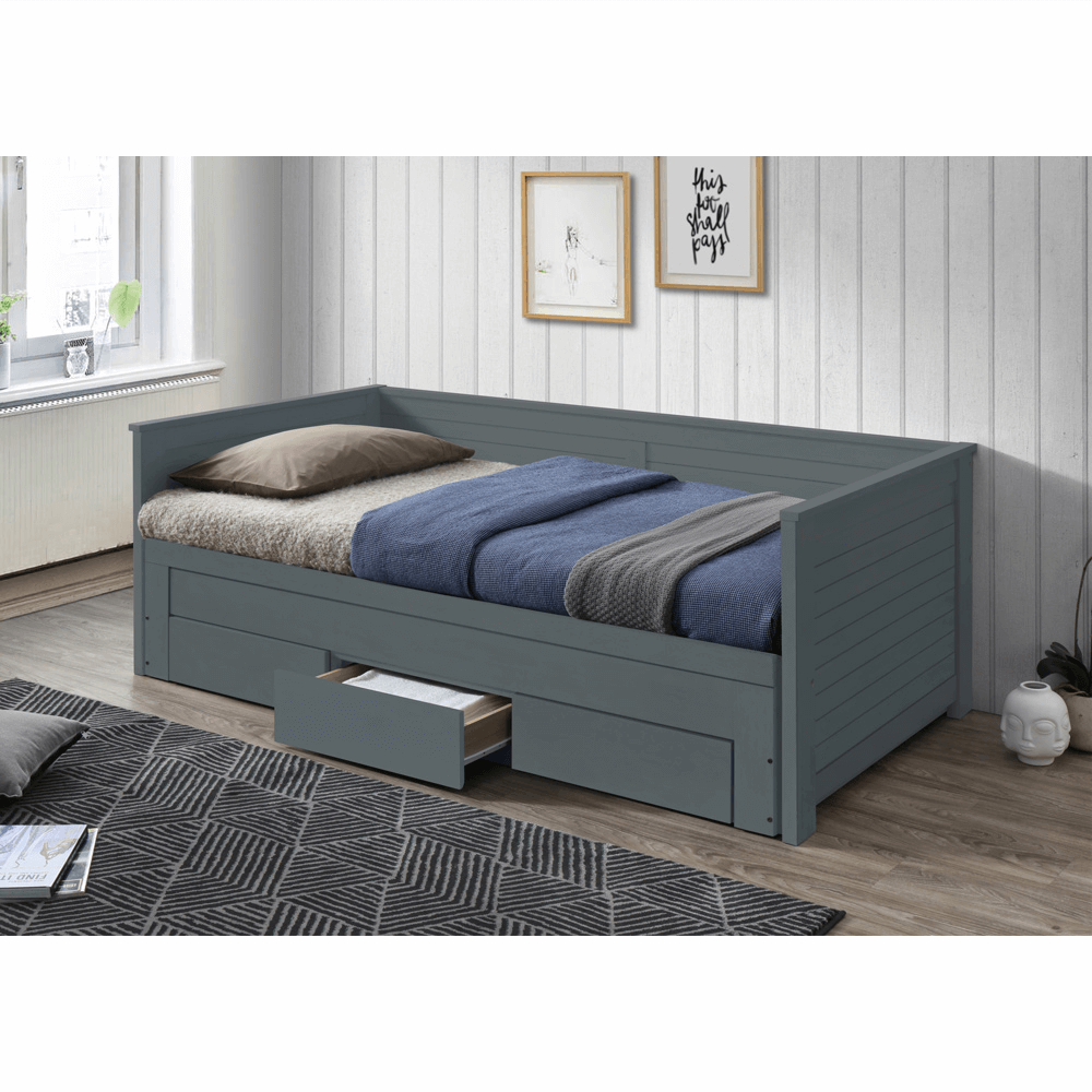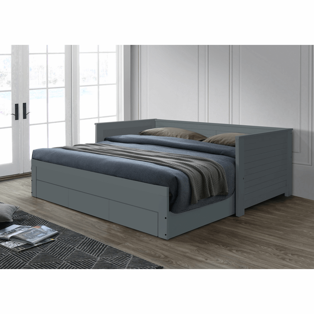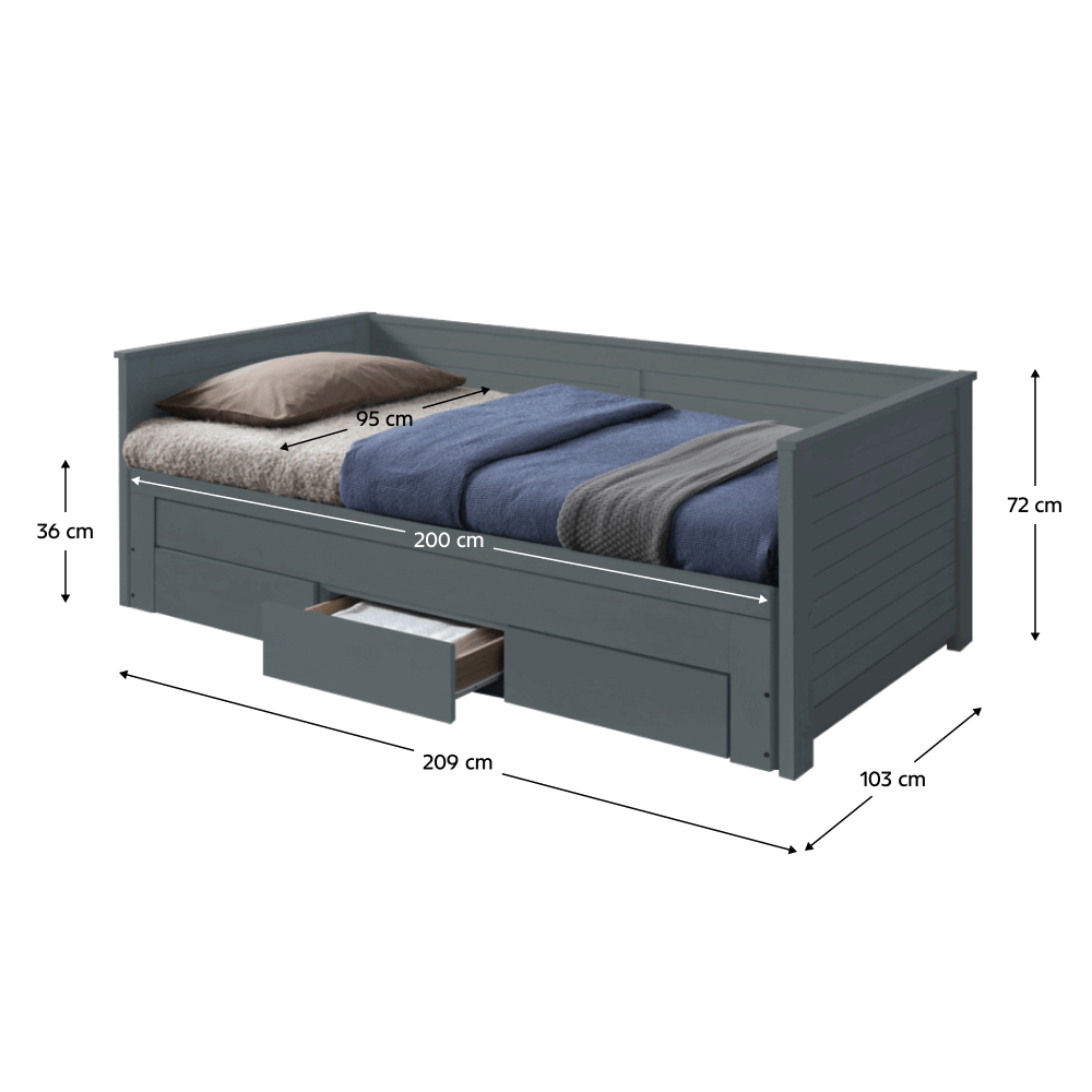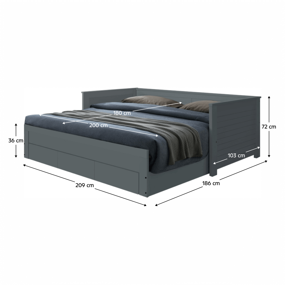 Materiál: masívne drevo/MDFFarba: siváRozmery (ŠxHxV): 209x103x72 cmRozmery jednolôžka (ŠxHxV): 90x200 cmRozmery postele po rozložení (ŠxHxV): 180x200 cmHĺbka postele po rozložení: 186 cmVýsuvacia konštrukcia na kolieskachDodávané s 2 latkovými roštmiVýška po rošt: 36 cmNosnosť: 110 kgS bočnou zástenouS 3 šuplíkmiDodávané bez matracaMožnosť zakúpiť matrace z našej ponukyDodávané v demonteAk plánujete posteľ používať rozloženú ako manželskú posteľ, odporúčame matrace s rozmermi 90x200 z našej ponuky. Ak posteľ budete používať ako jednolôžko, odporúčame matrace s rozmerom 85x200 a 95x200 cm.Jedným z matracov ku posteli Goreta môže byť aj matrac BE KATARINA 10 NEW s rozmerom 95x200 cm.