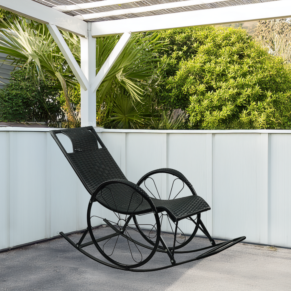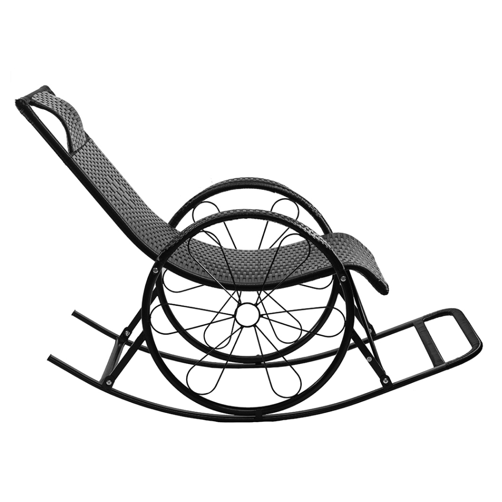 Materiál: technický ratan/kovFarba: čiernaRozmery (ŠxHxV): 61x149x90 cmVýška sedu: 42 cmHĺbka sedu: 65 cmŠírka sedu: 44 cmŠírka chrbtovej opierky: 44 cmVýška chrbtovej opierky: 55 cmVýška opierky na ruku od zeme: 60 cmNosnosť: max. 120 kgHojdacieRelaxačnéPohodlnéPodrúčka v tvare kolesaVhodné do interiéru a na kryté terasyOdporúčame výrobok chrániť pred nepriaznivými poveternostnými podmienkami, aby sa predĺžila životnosť výrobkuDodávané v demonte
