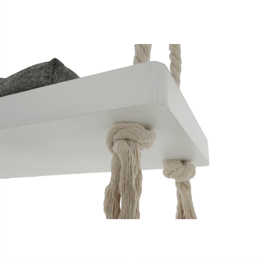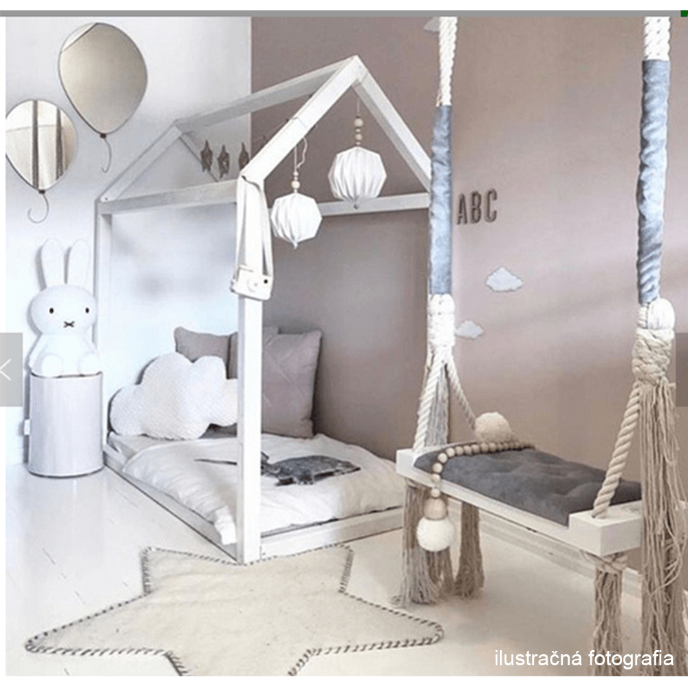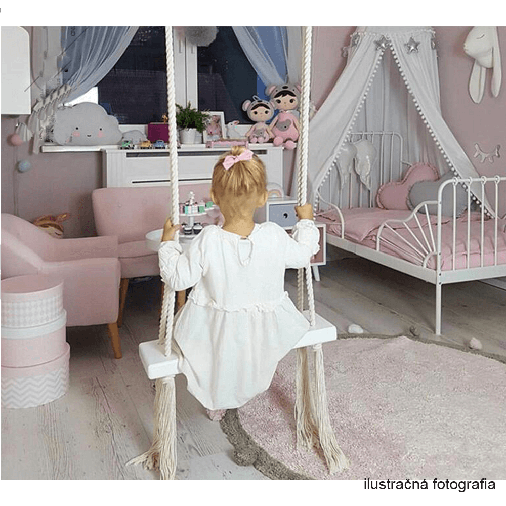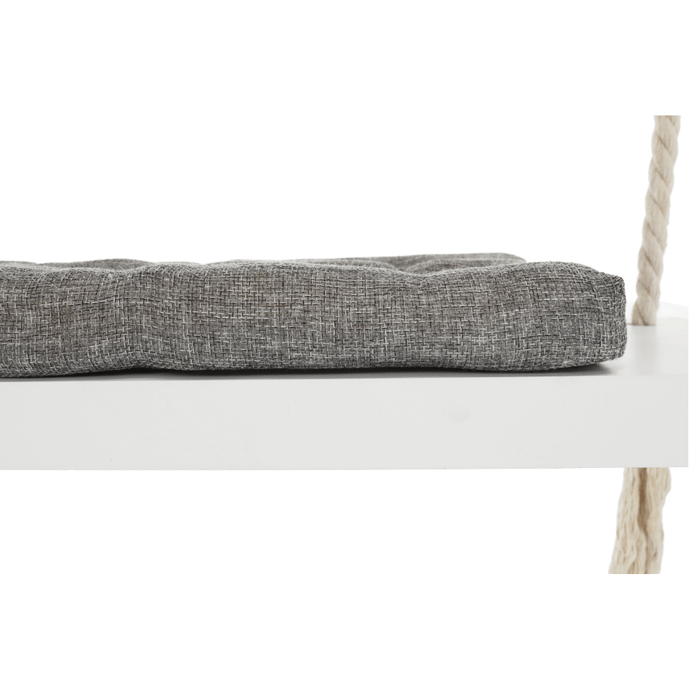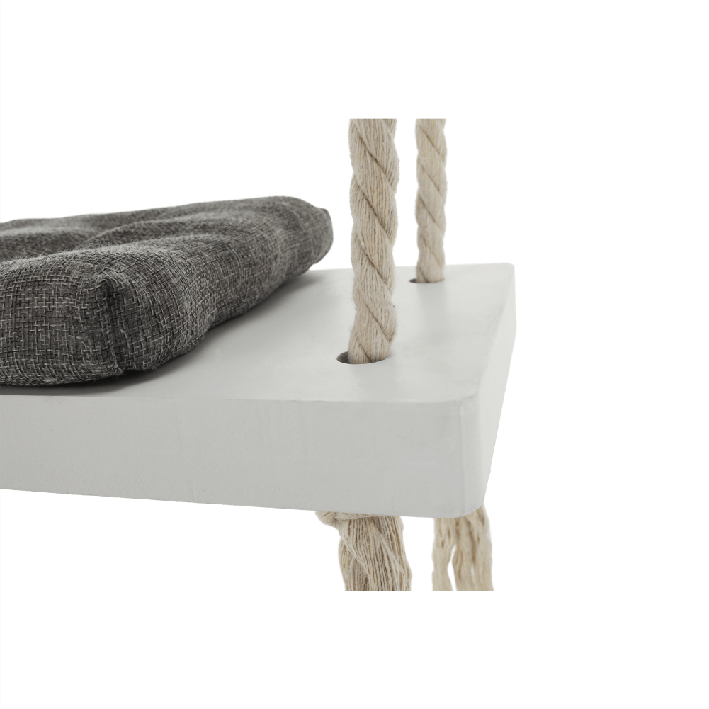 Materiál konštrukcia: drevo/lanoFarba: bielaMateriál vankúš: látkaFarba: siváRozmery hojdačka (ŠxHxV): 50x18x3 cmRozmery vankúš (ŠxHxV): 34x17x4 cmVankúš so suchým zipsomSnímateľnýOdporúčame prať ručne pri max. 40° Nebieliť, nečistiť chemickyNežmýkať, vankúš tak môže stratiť tvarNosnosť: 60 kgKovanie na zavesenie súčasťou baleniaVhodná pre deti od 4 rokovPre deti pod dozorom dospeléhoVhodná do interiéruModerné spracovanieDodávané v demonte