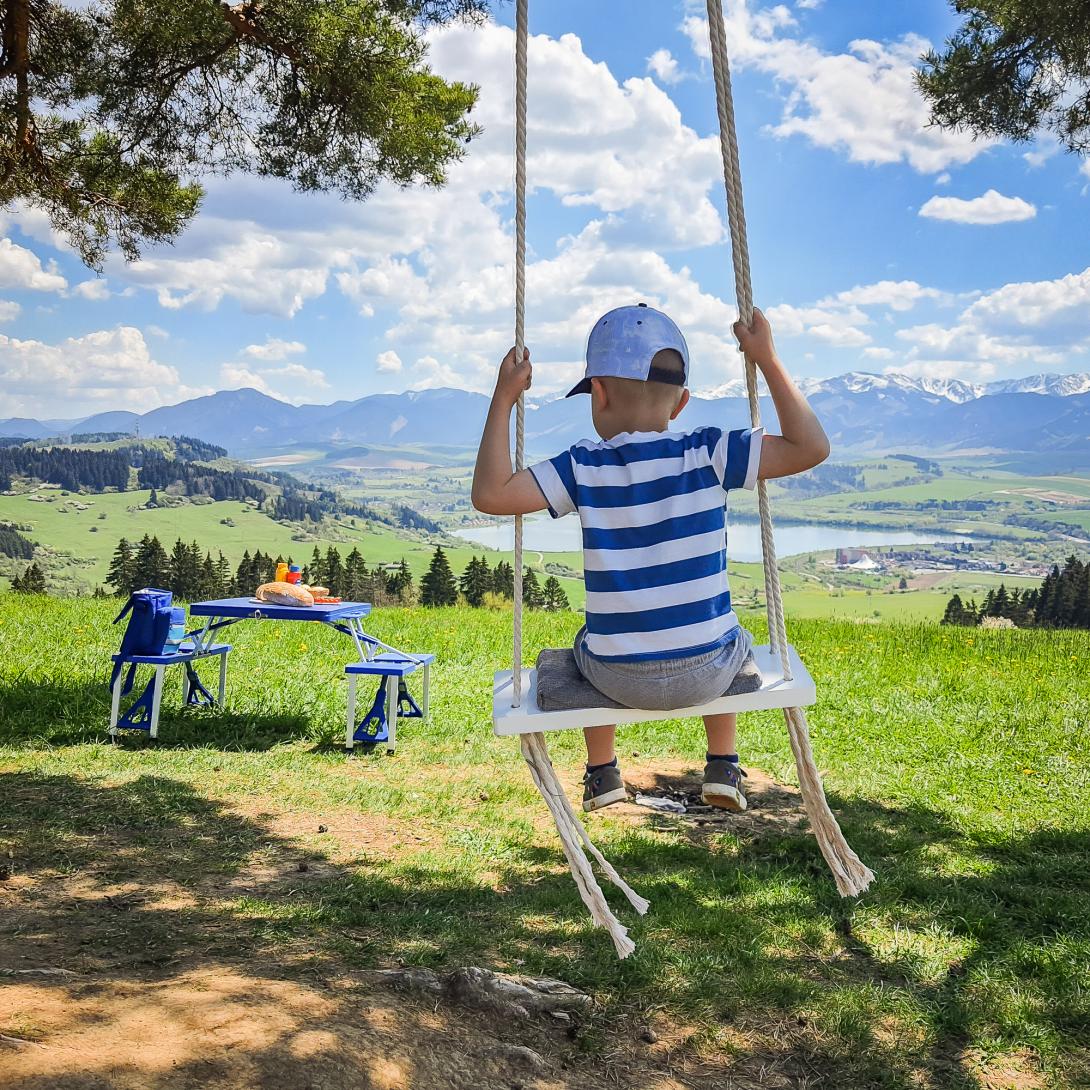 KONDELA Hojdačka pre deti, biela/sivá, SVING
